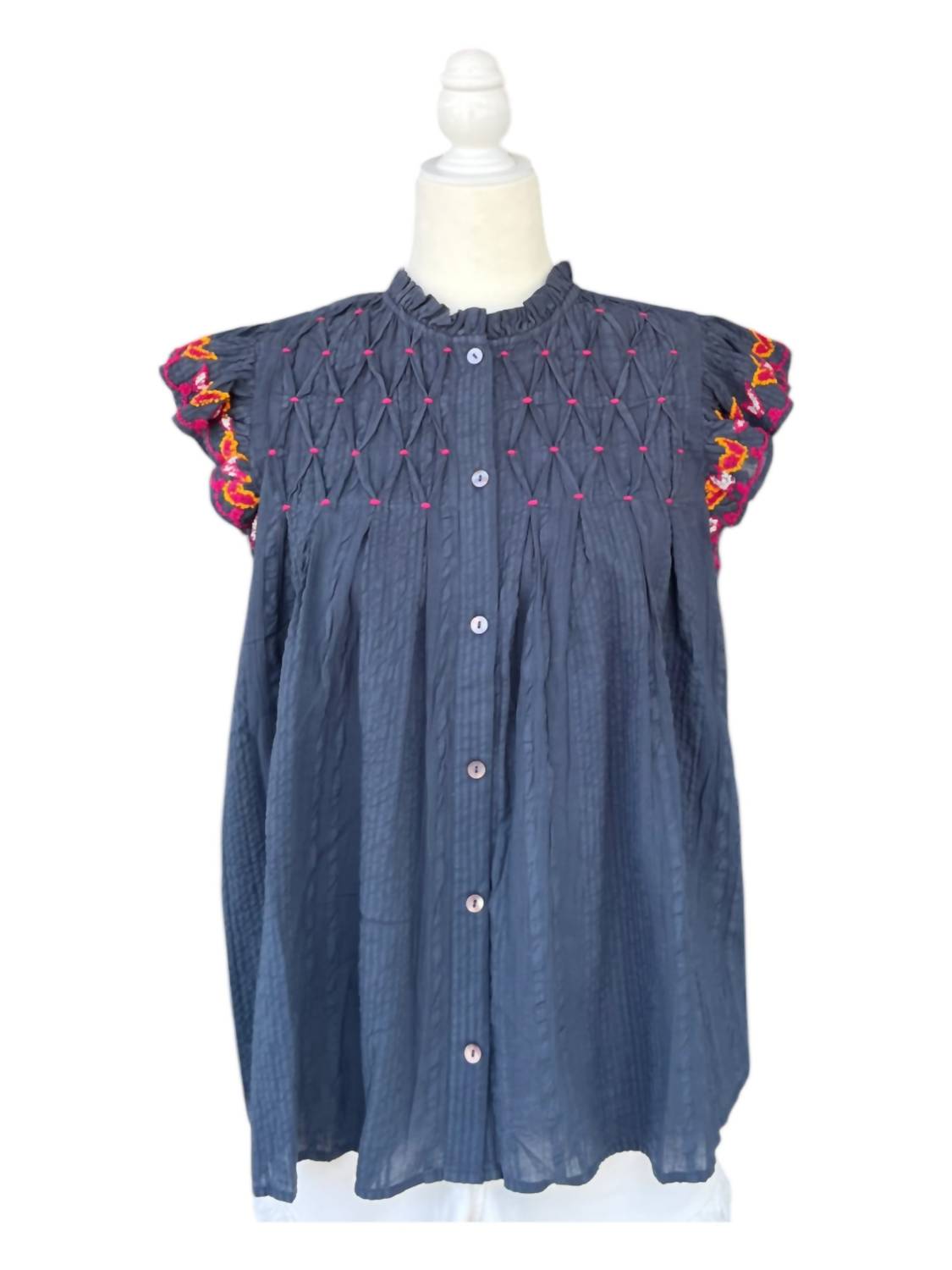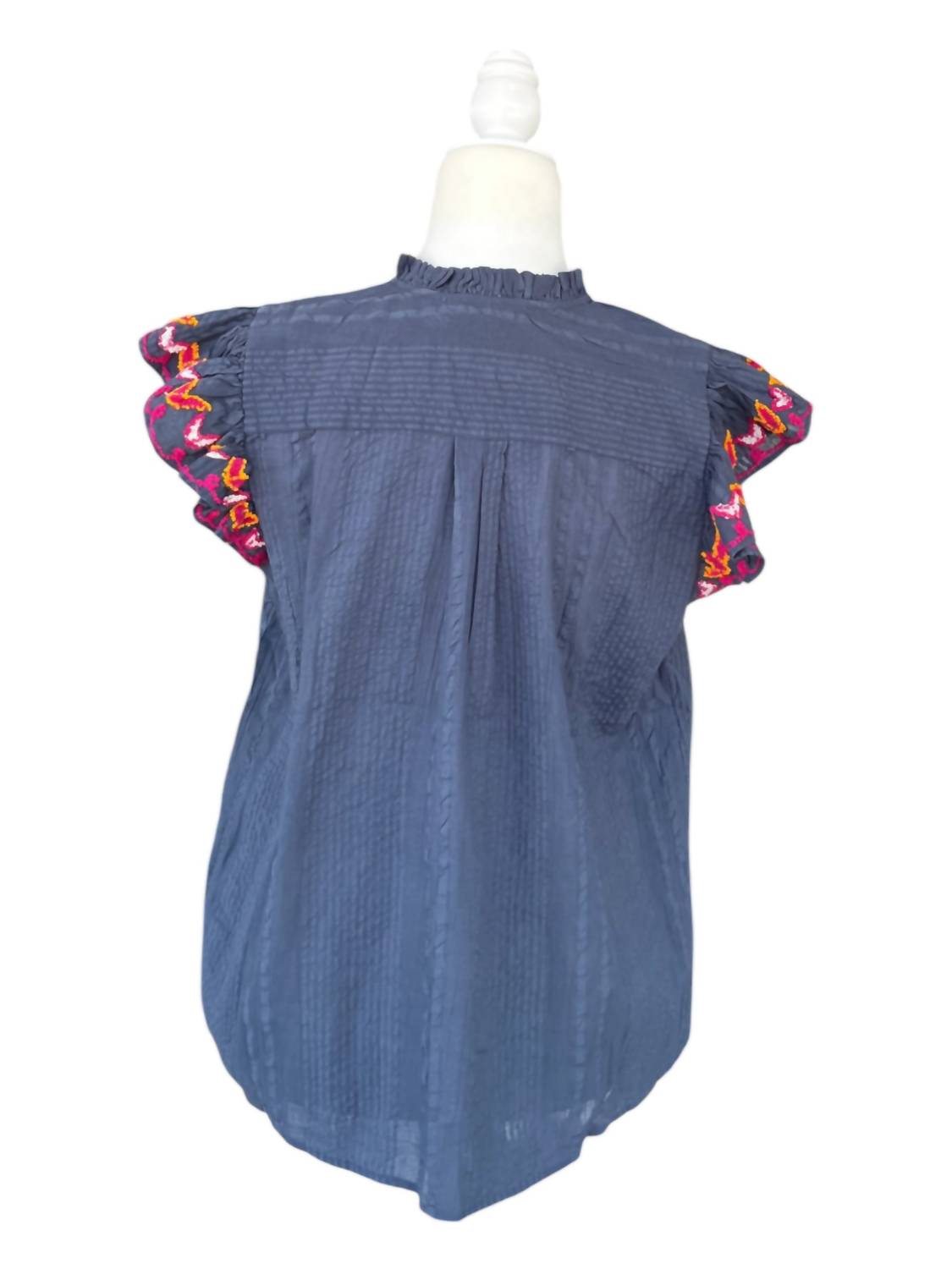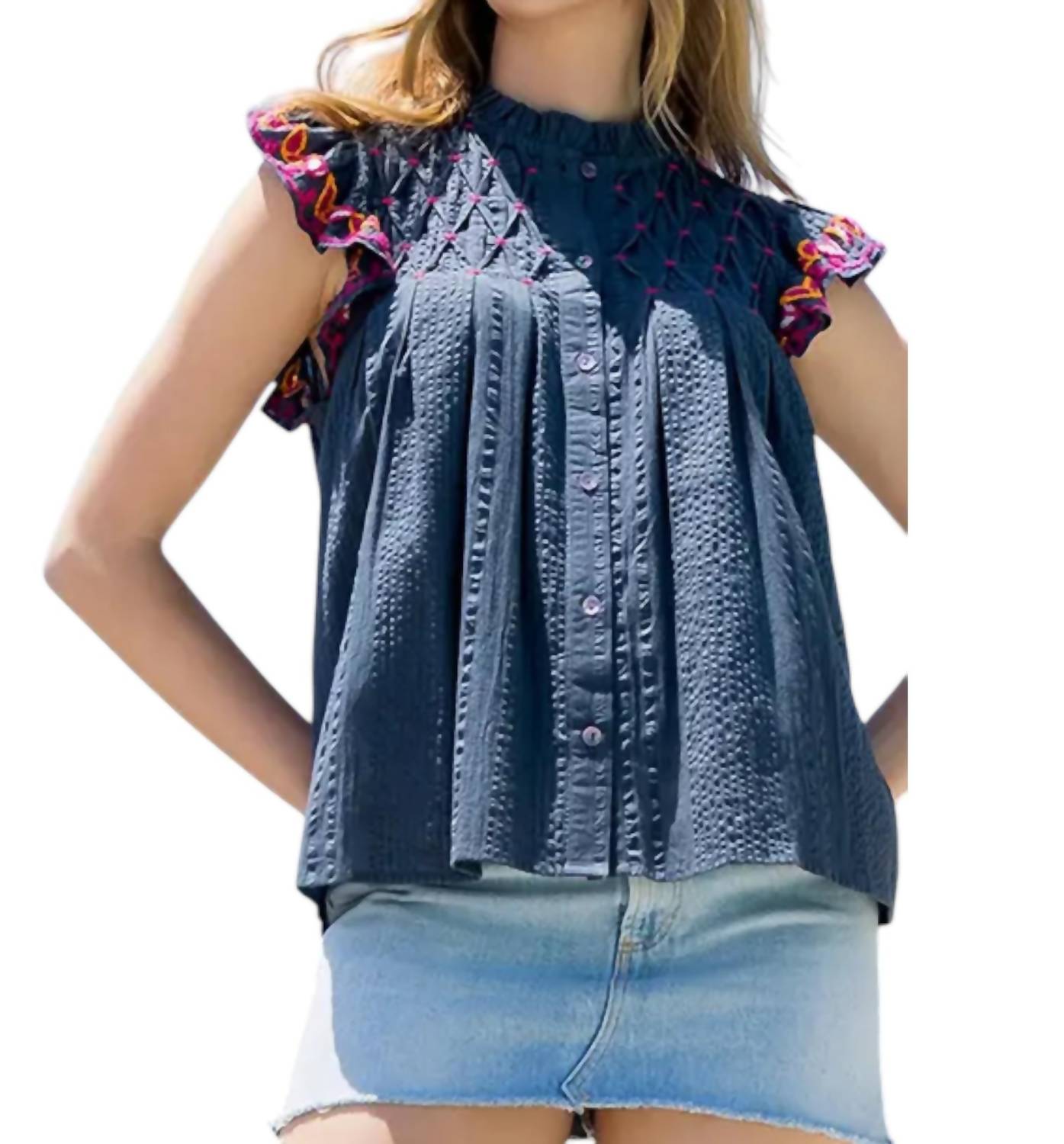 The short sleeve tee you'll want in every color.Expertly crafted with a button front for easy wear. Flutter cap sleeves add a feminine touch. Made from crape fabric with lattice stitching for style. Hand-knotted pleats enhance the design. Made from 100% cotton for ultimate comfort.