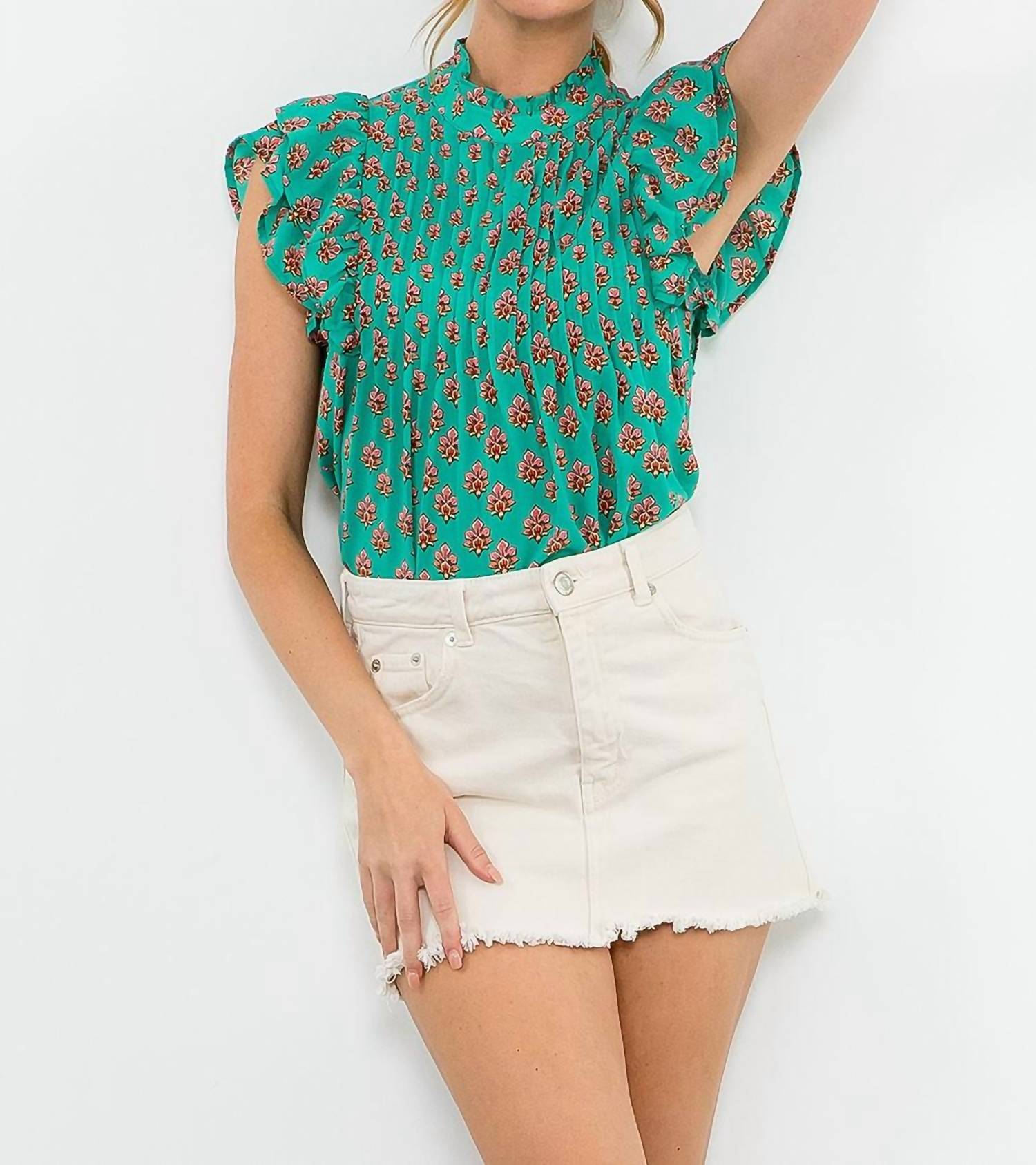 A timeless blouse that will never go out of style.3” flutter sleeve. 100% polyester. Wearing size S. Height 5' 8", Bust 32", Waist 23", Hips 35".