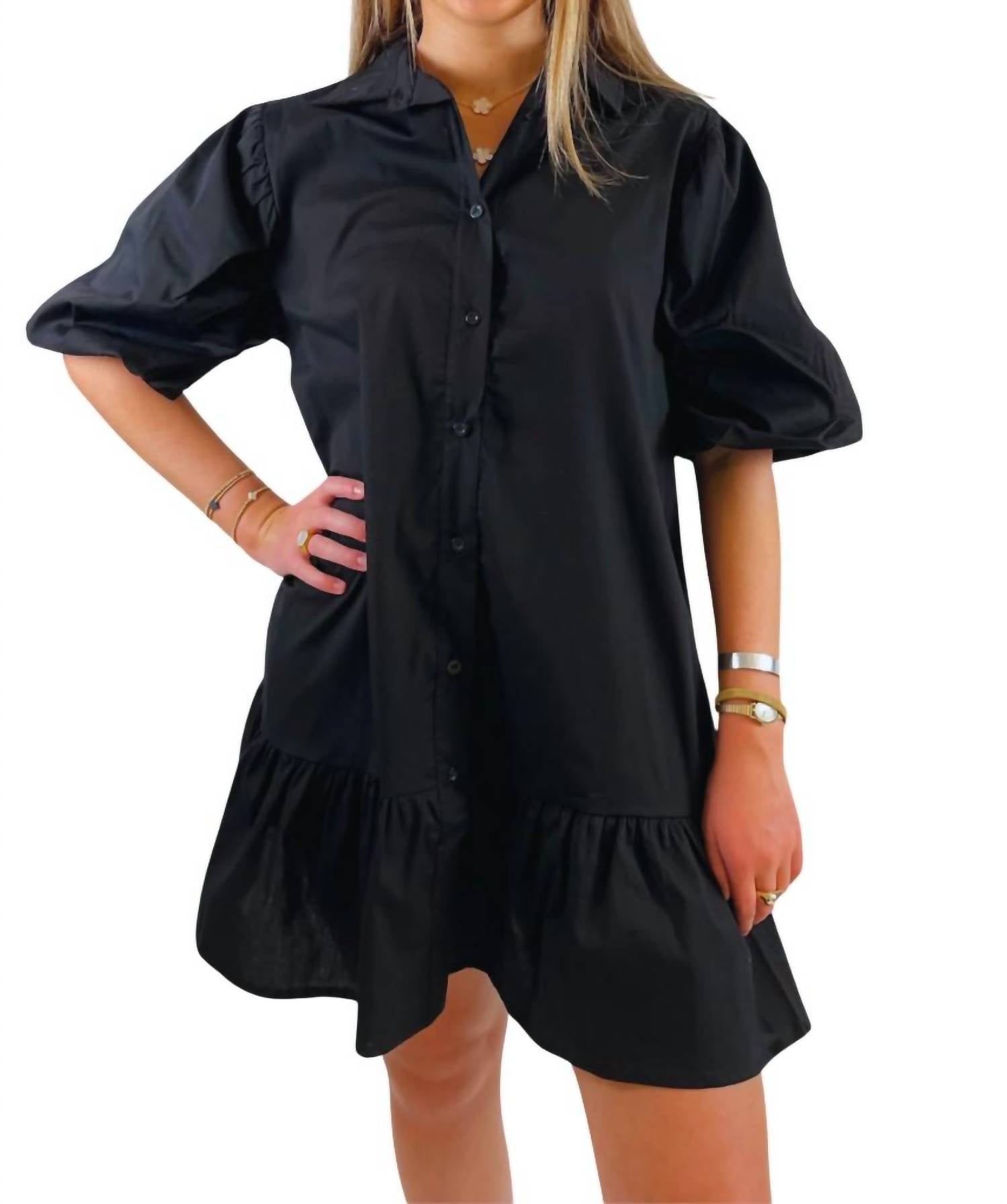 The Piccolo Suede Mixed Media Mini Dress by THML offers a perfect blend of style and versatility for any occasion. With short sleeves and an A-line silhouette, this solid black mini dress is crafted from 90% Polyester and 10% Spandex. Designed for the modern woman, it features a button closure and a chic collar neckline that transitions seamlessly from work to dinner. Care: Machine wash for easy maintenance. Model is wearing a size small.