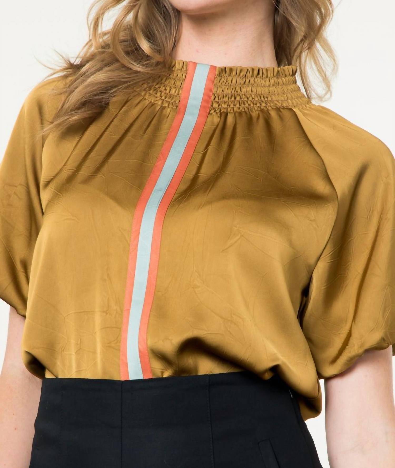 A timeless blouse that will never go out of style. This short sleeve top features a stylish mockneck and a comfortable pull-on closure, with a garment length of 24 inches. Crafted from a woven blend of 95% polyester and 5% spandex, it promises a perfect balance of durability and stretch. Designed in the USA. Model is wearing a size S (5'9" height, 32" bust, 25.5" waist, 36" hips).