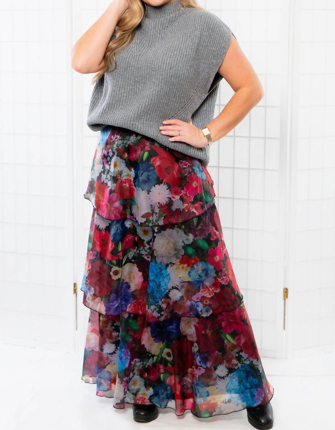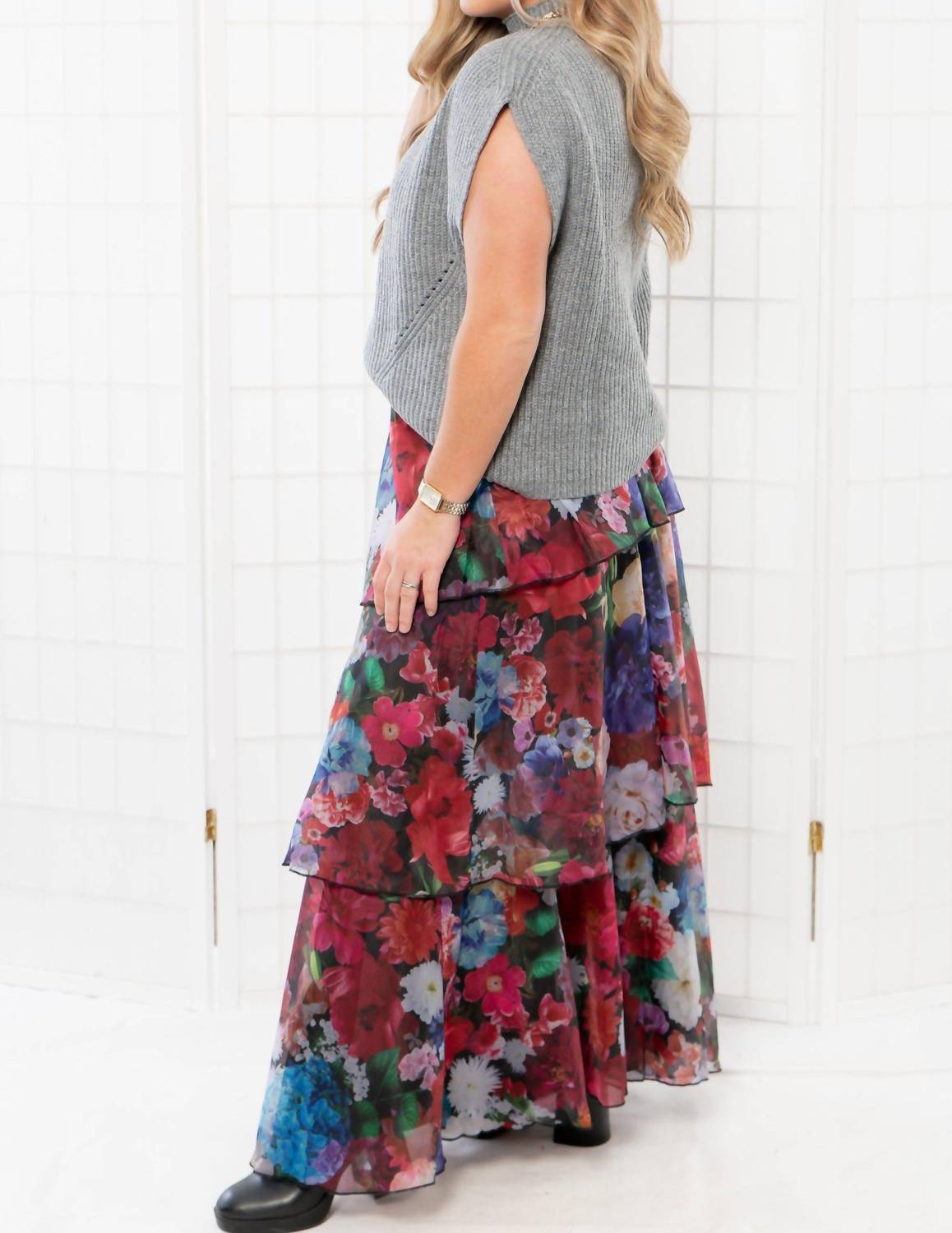 That extra layering piece you didn't know you needed! Elevate your winter wardrobe with the THML Turtleneck Ribbed Sweater Vest in dark gray. This sleeveless vest showcases a textured ribbed pattern for a classic and stylish look. With a sophisticated turtleneck design, it can effortlessly transition your outfits from fall to winter. Despite being versatile for layering, it features a simple pull-on closure. Care instructions are not provided.