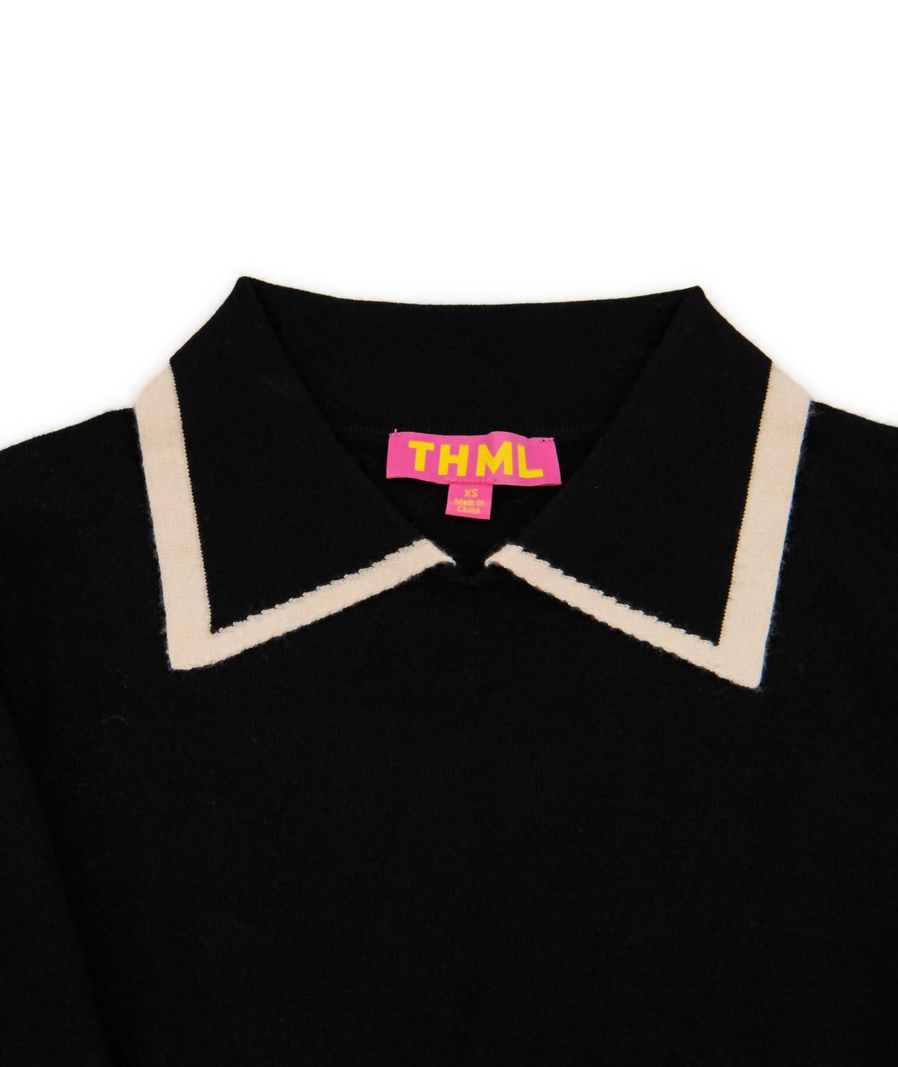 The ultimate go-to sweater, expertly crafted to provide the perfect combination of warmth and style. Its classic design and soft fabric make it a must-have addition to your wardrobe. Embrace timeless sophistication with the Leland Sweater for Women by THML, a fall and winter essential. This black, solid-patterned sweater features a collar neckline and long sleeves, offering a chic and cozy style without the fuss of pockets. Made for easy dressing, it boasts a pull-on closure. Care instructions are unspecified, allowing for personalized maintenance.