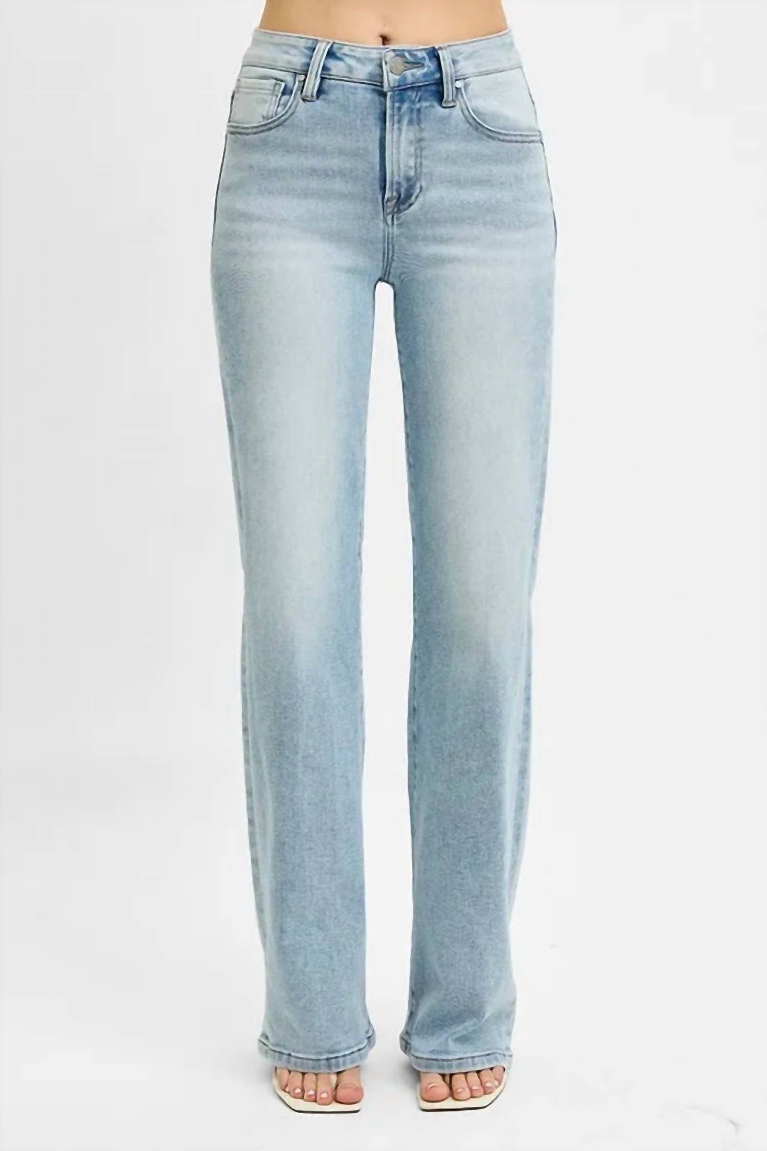 Pair these wide leg jeans with mules, slides or your favorite strappy sandals. Embrace the retro-chic aesthetic with the Women's Risen High Rise Wide Leg 90's Jeans by Trendsi, offering a medium wash for a stylish throwback look. These jeans feature a high rise waist and wide leg silhouette, complemented by a button closure for a classic fit. Crafted from a cotton blend with 65% cotton, 30% polyester, 3% rayon, and 2% spandex, they are slightly stretchy and pocketed for convenience. Imported and perfect for a dinner party, these jeans are machine washable and can be tumble dried on low. Sizes range from waist 24 to 32 with a 32.5-inch inseam and 10.5-inch rise.