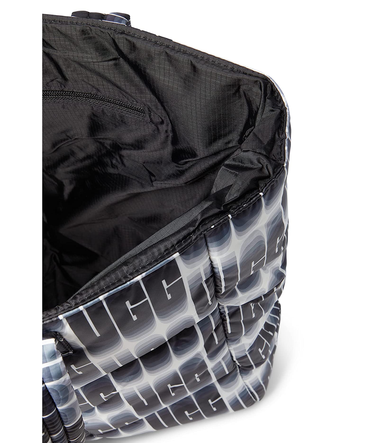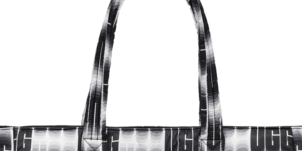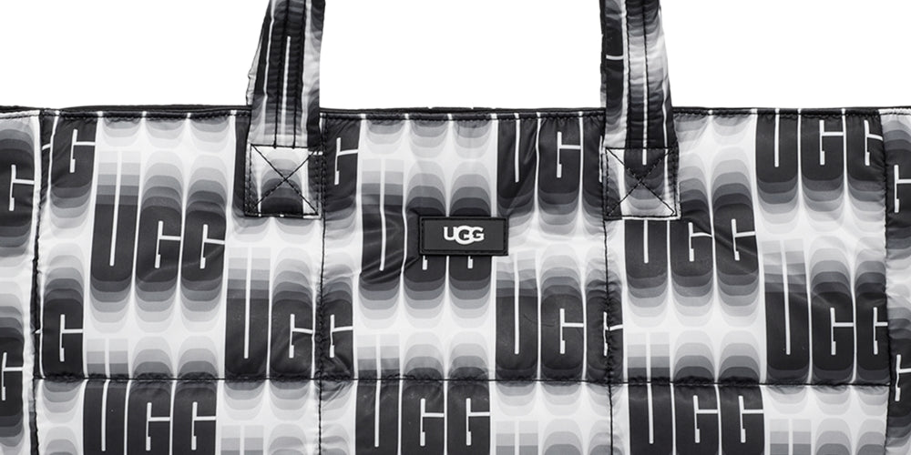Get yourself the spacious and sleek UGG® Ellory Puff Tote handbag for compact storage. | Nylon construction. | Magnet closure. | Two top handles. | Interior back zipper pocket. | Nylon lining. | Imported.