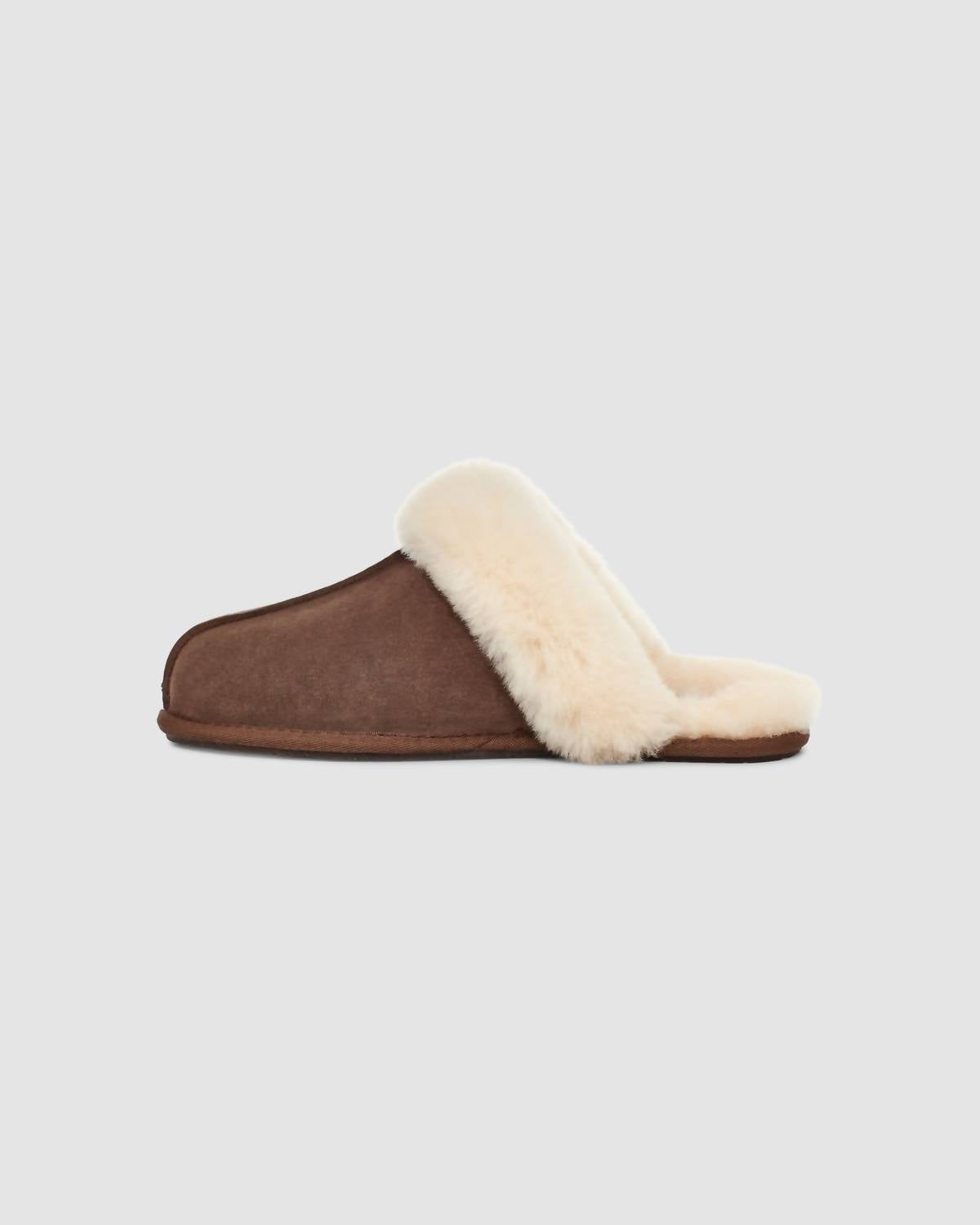 These slippers are super cozy and perfect for relaxing mornings. They have soft suede on the outside and a warm, fluffy sheepskin lining inside to keep your feet comfy. Great to slip on right by your bed, they go well with any casual clothes.