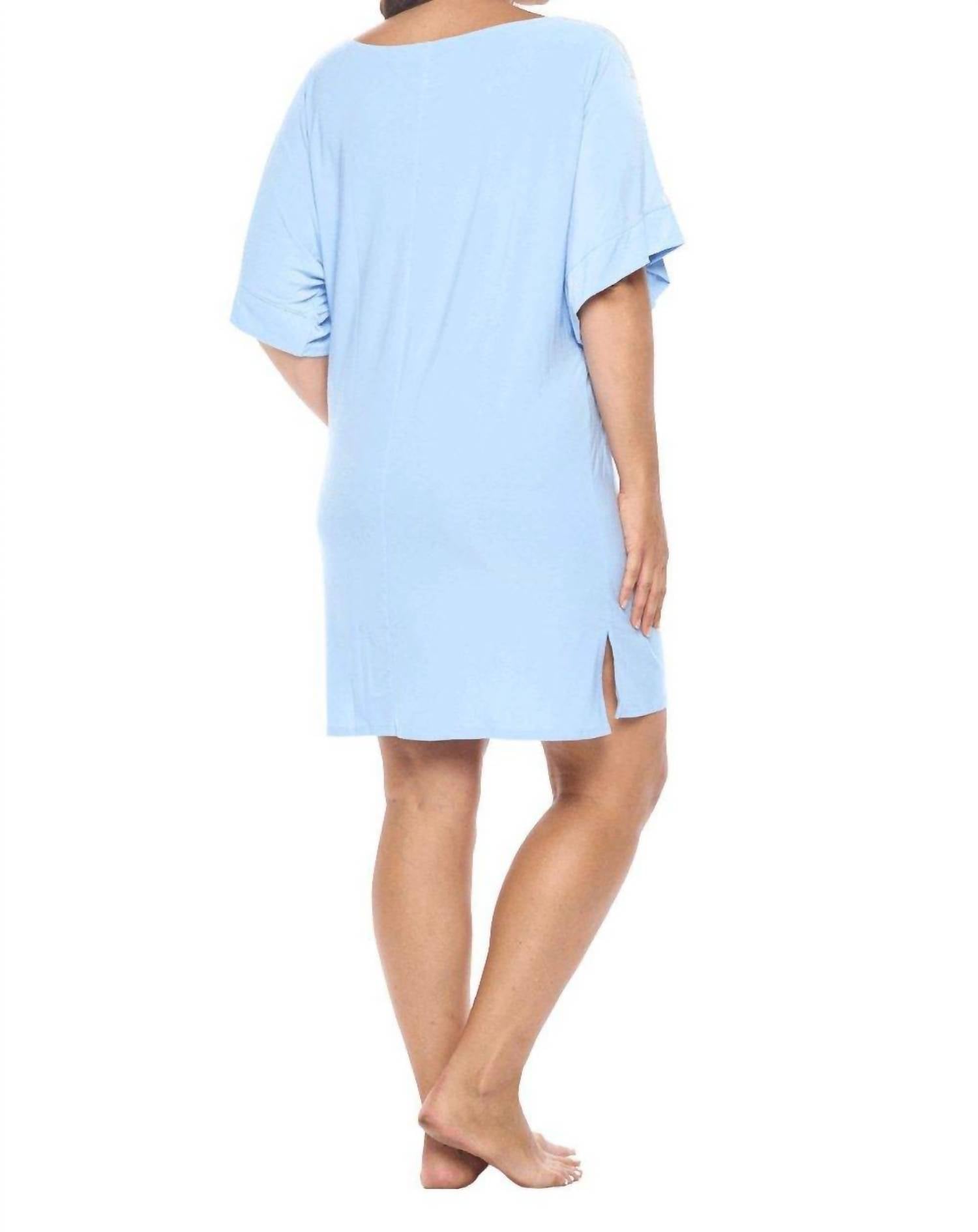 This lightweight cooling pajama gown features wide kimono sleeves and a generous fit. It has roomy sleeves, a knee-length design, and soft lace arm details. Made from 96% polyester and 4% spandex. Machine wash cold, machine dry. Made in California.
