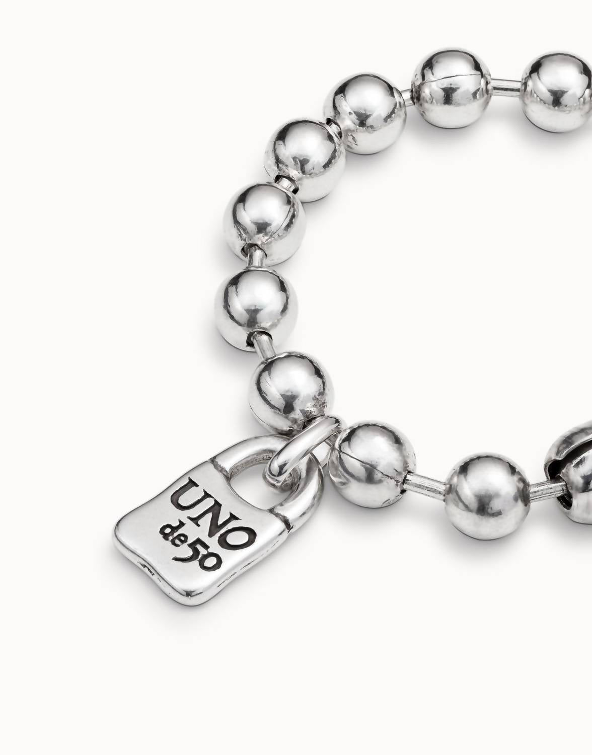 This bracelet will be your favorite go-to piece of the season. Discover the Women's Copito De Nieve Bracelet by UNOde50, beautifully crafted with characteristic rounded silver-plated pieces and a distinctive padlock charm. Handmade in Spain, this unisex treasure fits comfortably on wrists sized 15-16cm and makes for an exquisite gift when purchased as a pair. It comes with special packaging, adding a thoughtful touch to your special occasion. To maintain its shine, store the bracelet in its original bag or a closed box, avoiding contact with cosmetics, cleaning products, and sea or pool water. Clean with a soft cloth or a non-abrasive silver cleaner for lasting brilliance.
