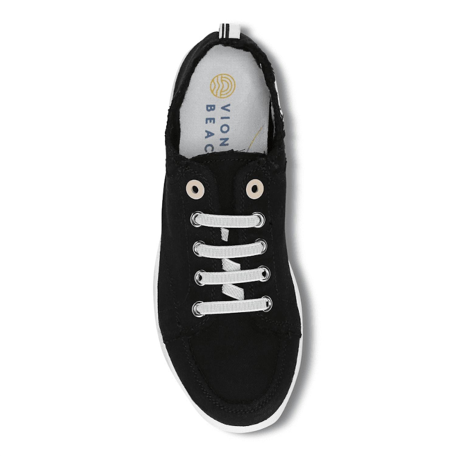 When fashion and function come together seamlessly. Step into summer with the Women's Pismo Canvas Shoes by VIONIC, offering the ideal blend of eco-conscious fashion and comfort. These sneakers feature an upper crafted from earth-friendly eco-certified cotton canvas or waffle knit, ensuring both style and sustainability. Concealed metal eyelets and stretch cotton laces provide an effortless fit, while the removable twill-covered EVA footbed enhances cushioning. With a TPR outsole and a vegan-certified design, these black sneakers with a round toe shape are perfect for adult women who prioritize both comfort and ethical choices.