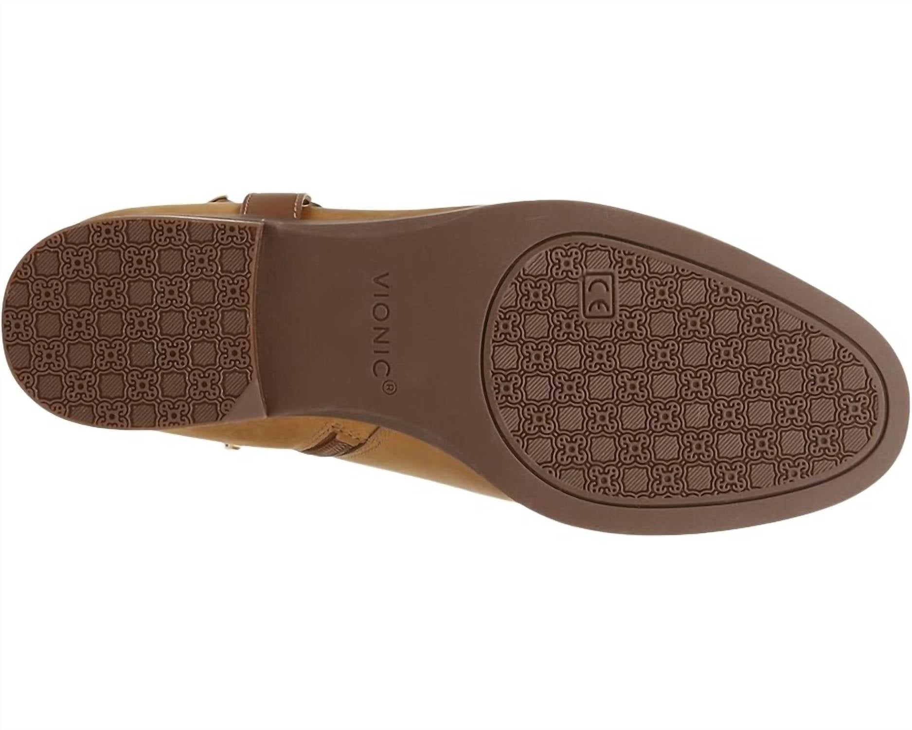 An equestrian-inspired design featuring a distinctive metal buckle and bit detail, complemented by a stylish side zipper for easy wear. Crafted with soft, durable, and water-repellent materials, this boot is perfect for navigating inclement weather while providing exceptional comfort and support. Leather or nubuck upper; rubber outsole; removable microfiber-wrapped EVA footbed. Wipe with a dry, cotton cloth to clean; test any cleaning product on a discreet area first.