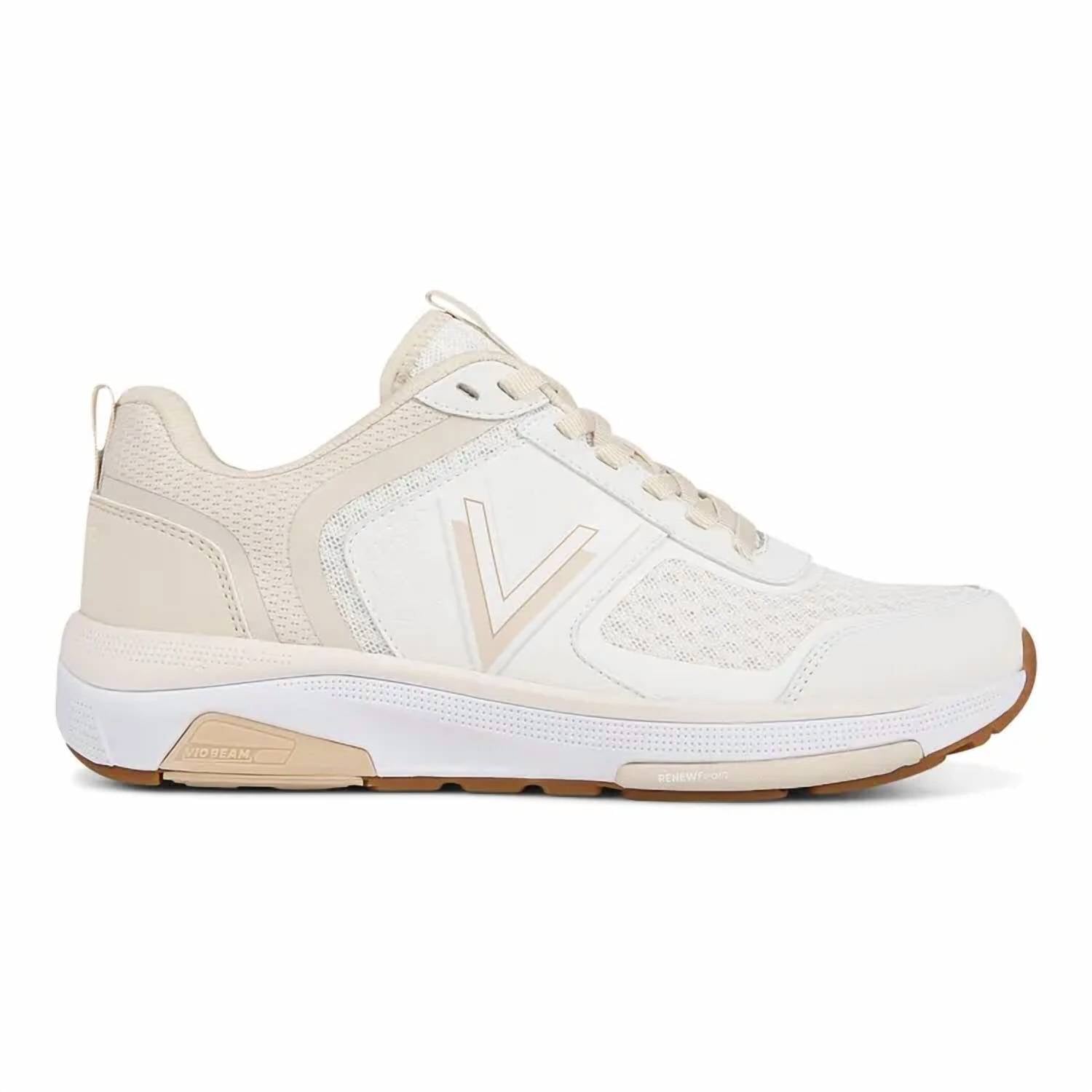 Step into comfort designed in a sophisticated white/cream combination. Crafted with a leather and mesh fabric upper. Feature a removable mesh covered EVA footbed for personalized comfort. Durable rubber outsole provides stability with First Ray Technology, promoting flexibility and enhanced forefoot stability. With a heel height of 1.75" and a platform height of 1.125". Ensure a comfortable yet stylish look for performance walkers.