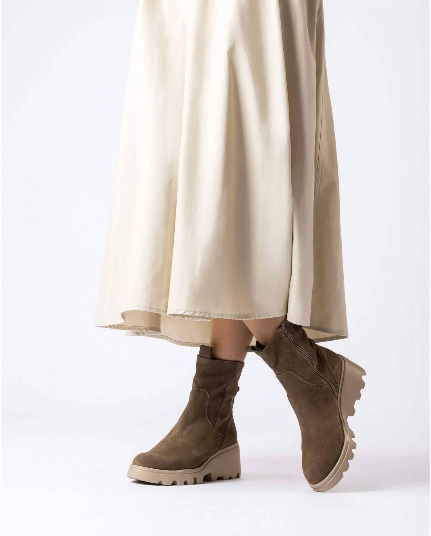Elevate your wardrobe with the Women's Luxe Ankle Boots by Wonders, designed to add height and style with their 2.55-inch wedge heel. Crafted from premium leather with a leather lining and rubber sole, these boots offer comfort and durability in every step. The zipper closure ensures an easy wear, while the round toe shape and normal width enhance the fit. These topo-colored boots are the perfect blend of fashion and functionality, ideal for making a trendy statement.