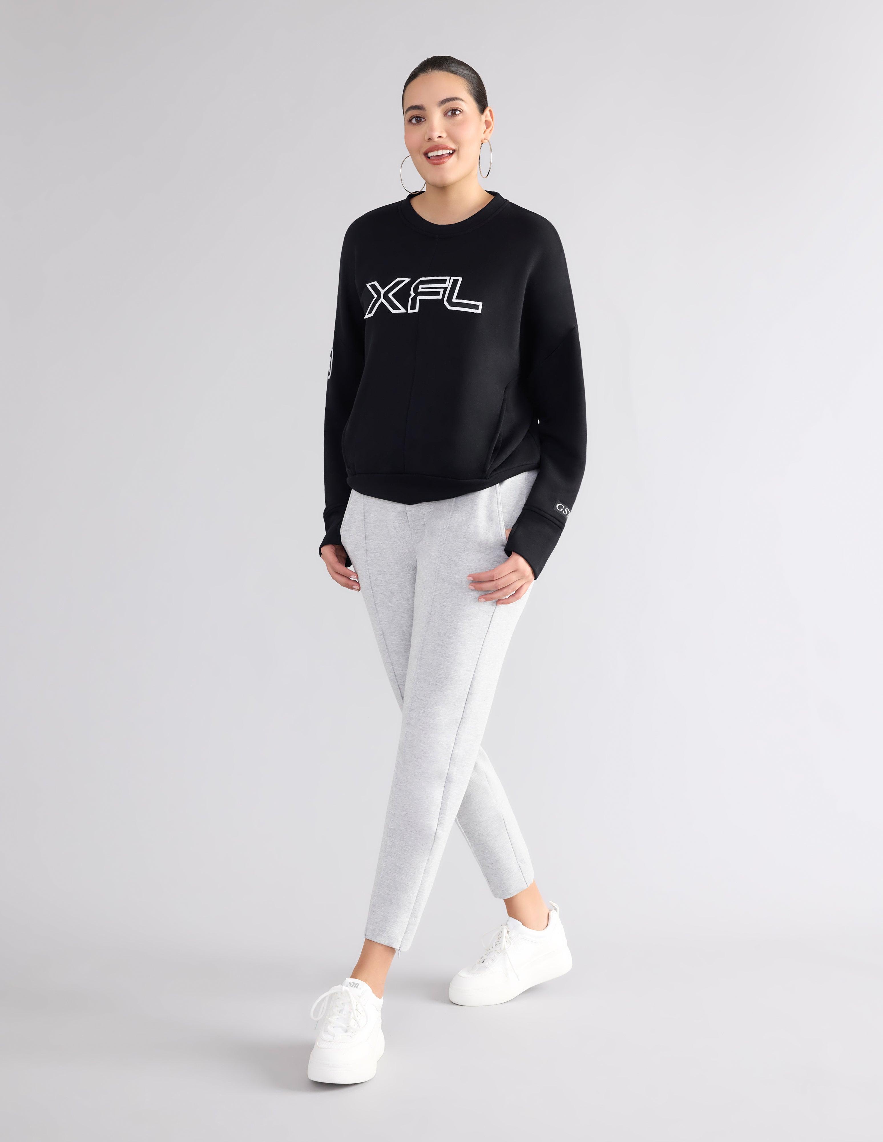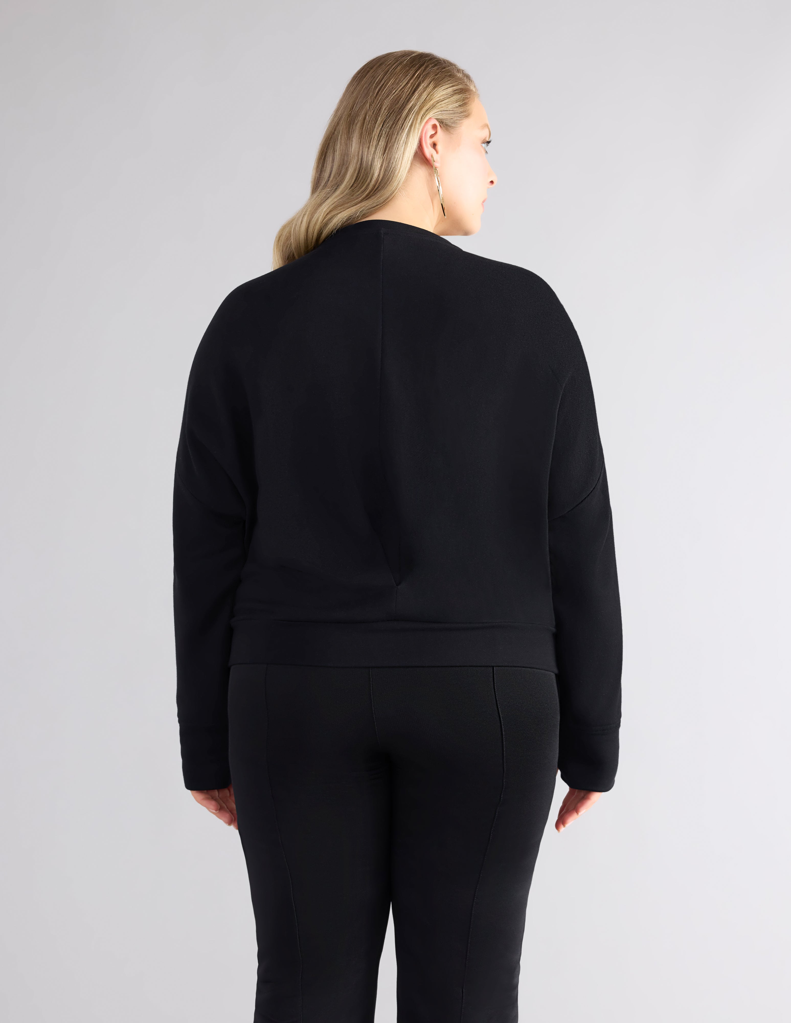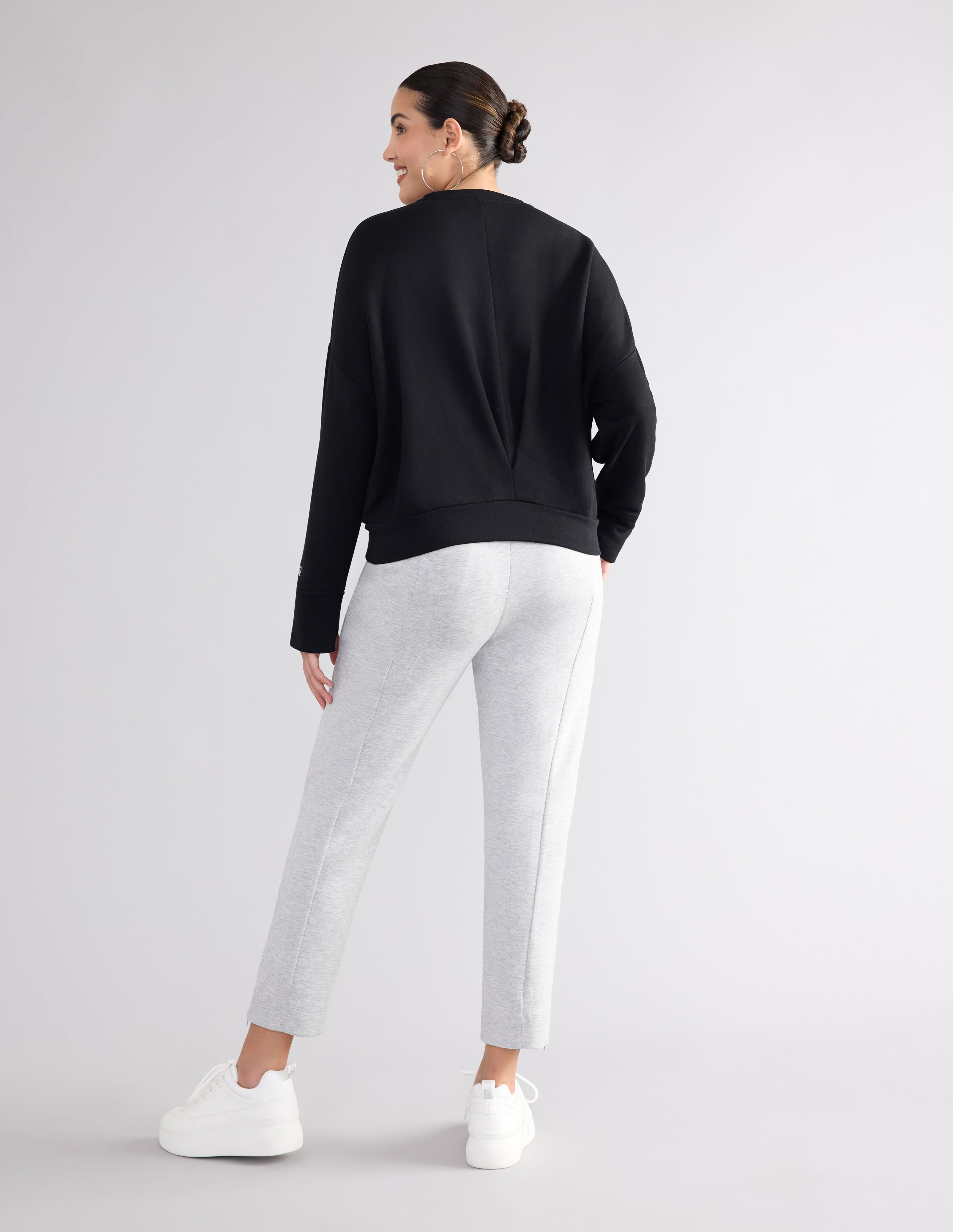 This crewneck top is a soft and stylish choice that features side pockets and center back detail.