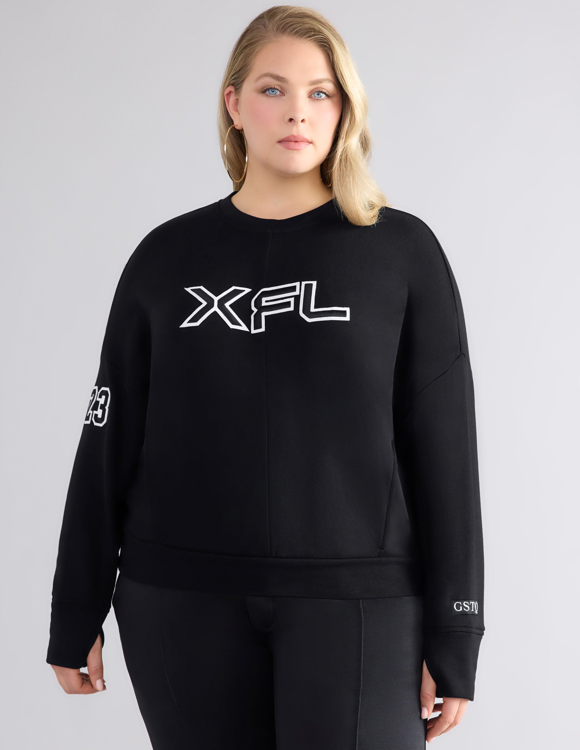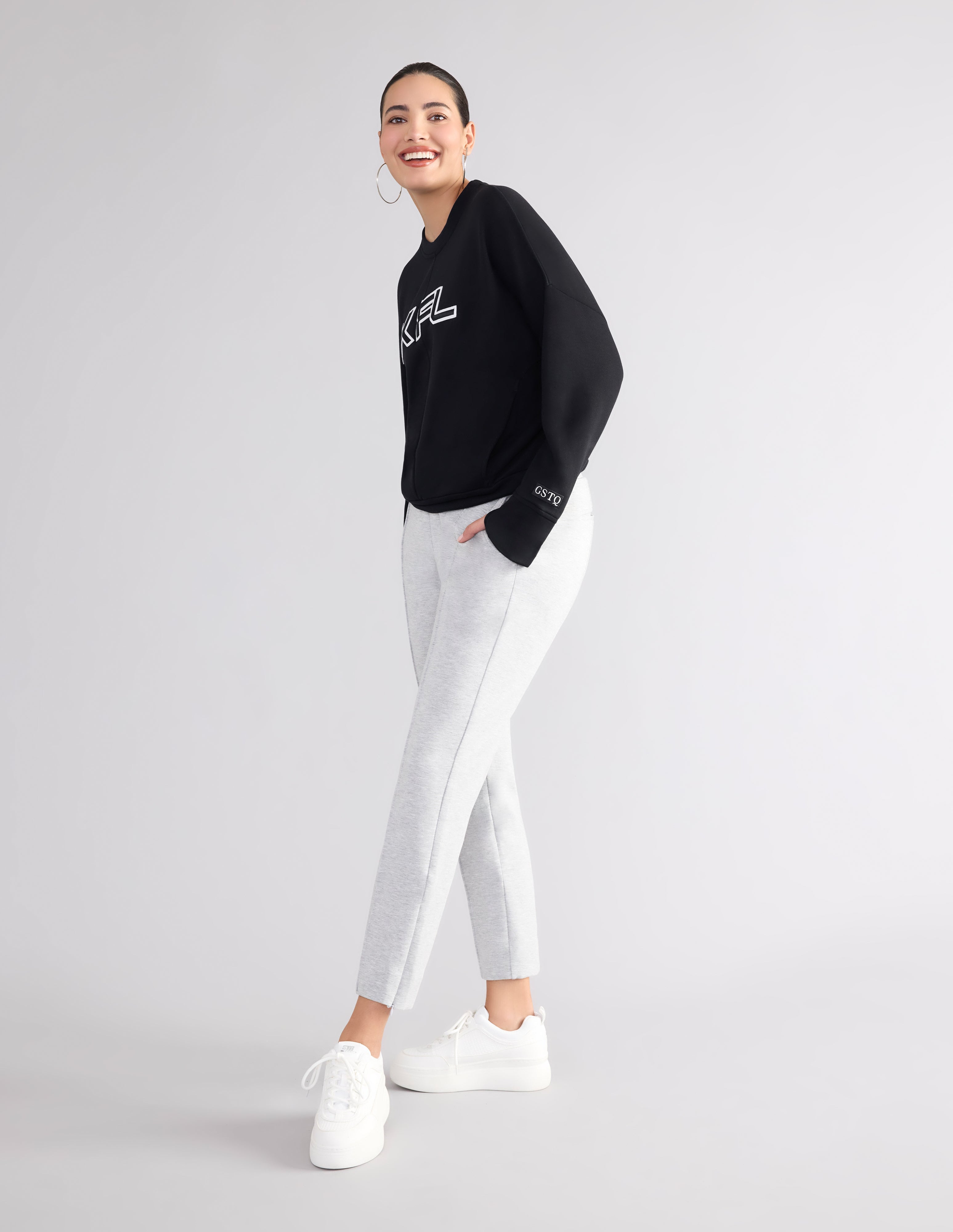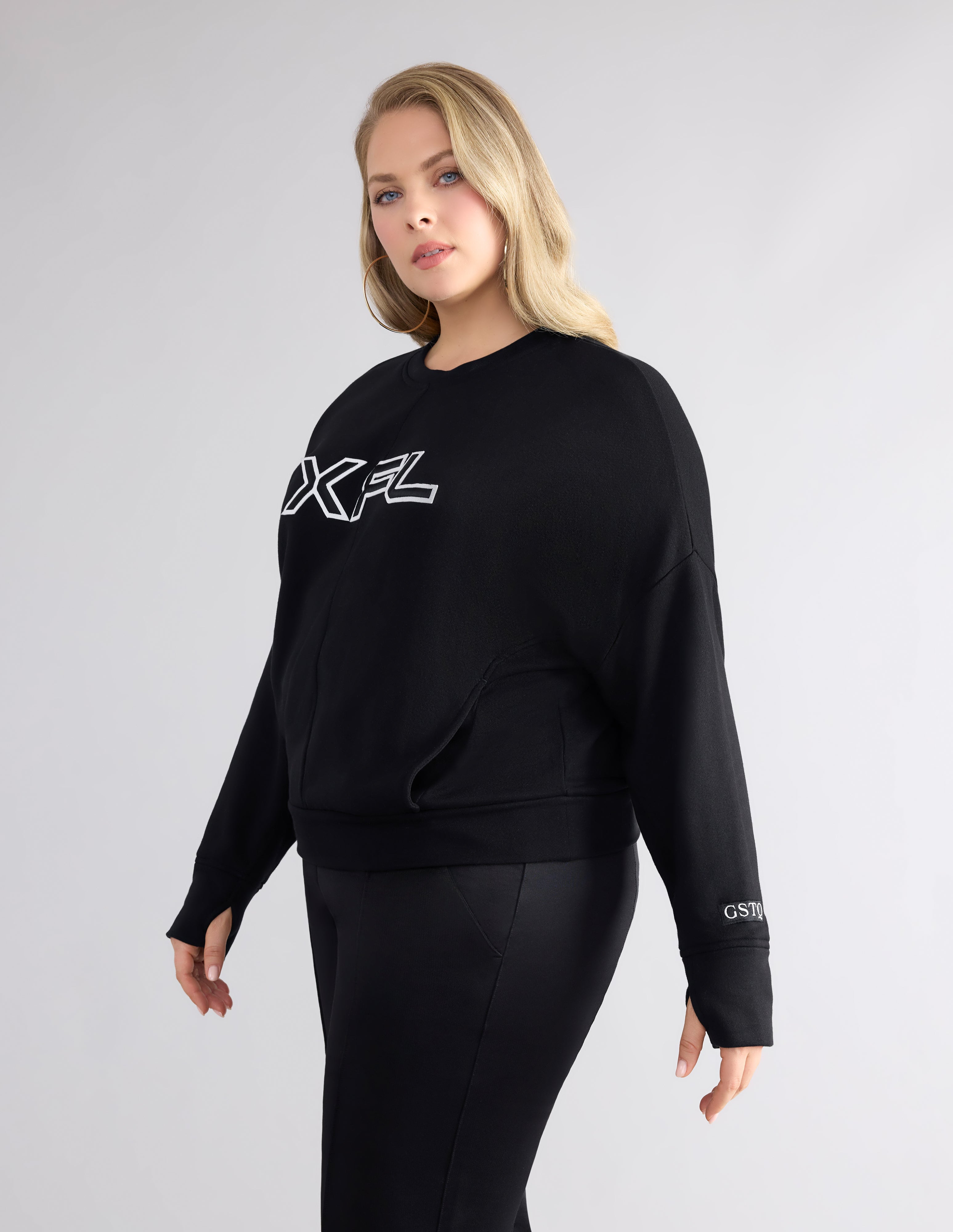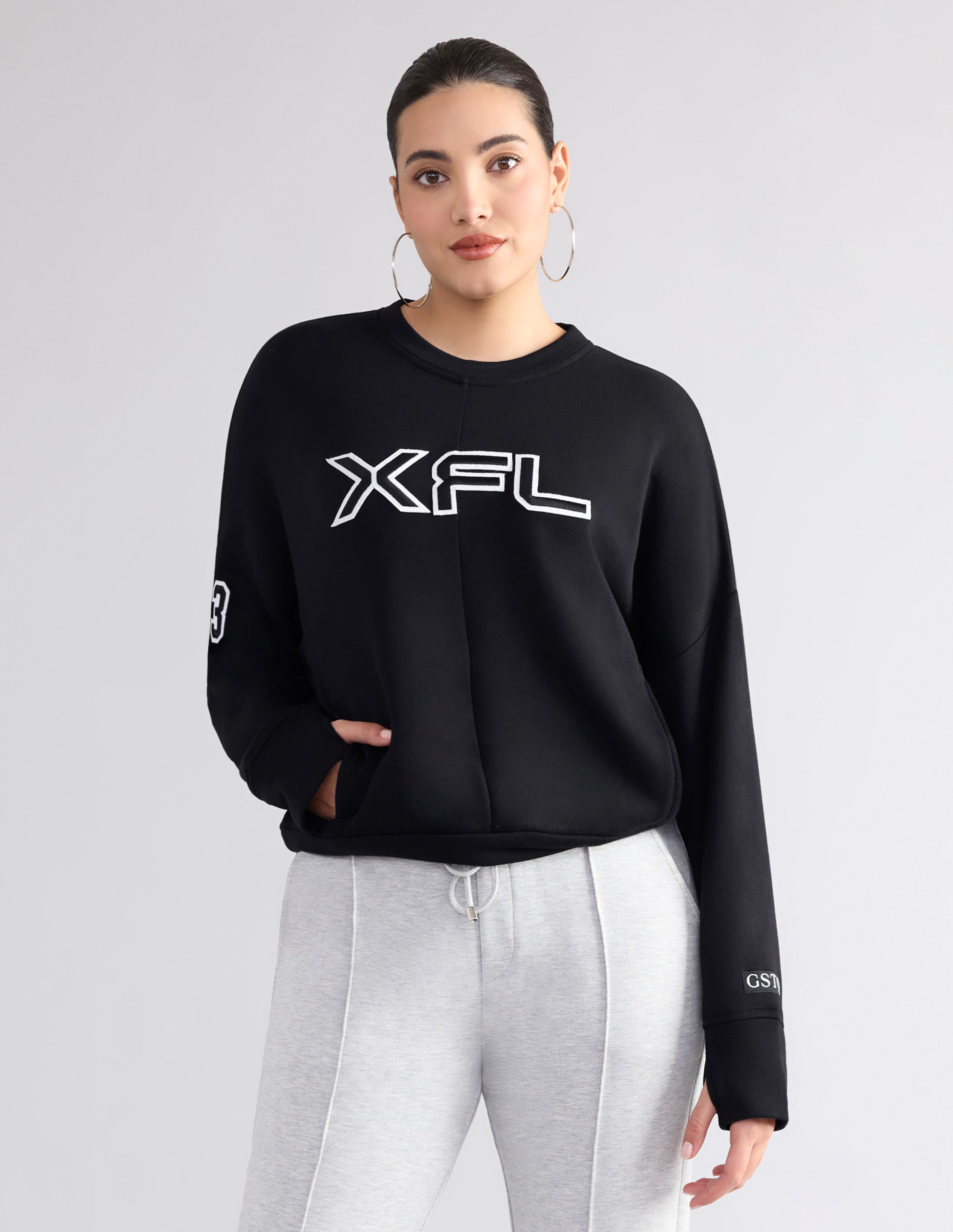 This crewneck top is a soft and stylish choice that features side pockets and center back detail.