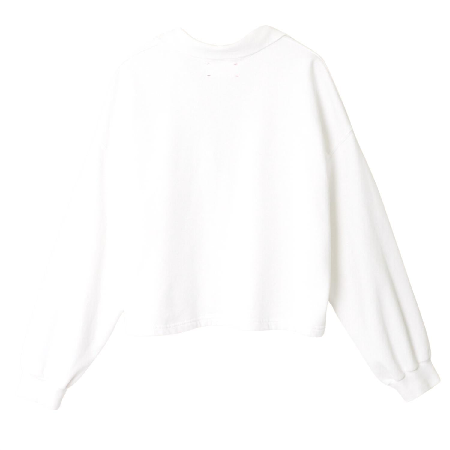 Whether you're running around town or lounging at home, this sweatshirt works for both. Xirena Holman Sweatshirt Emberly Fleece Terry Cotton in White Prism Sweatshirt Polo Split Neckline Sparkle Ribbon Detail Fitted at Cuffs Drop Shoulders True to Size Machine Wash Cold Made in Los Angeles, C.A.