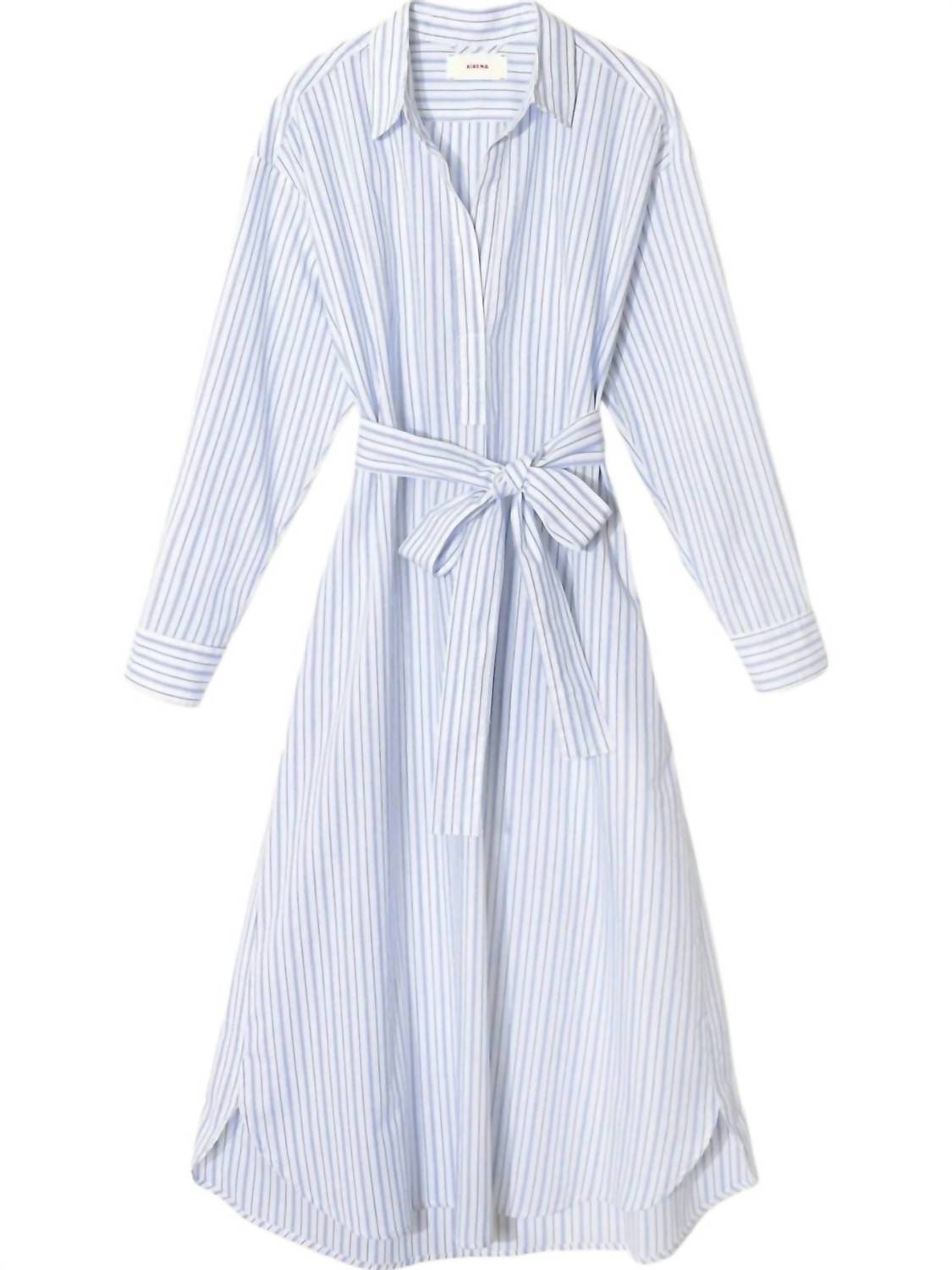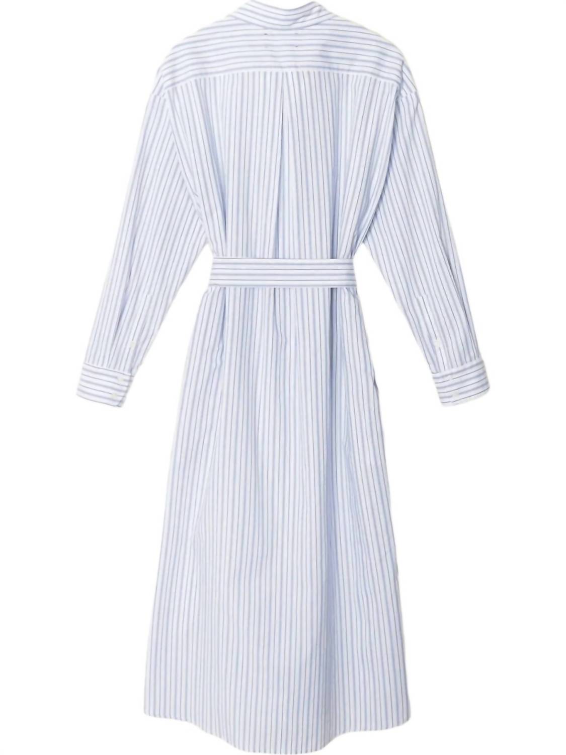 Let your style effortlessly shine. Stunning midi dress is the epitome of casual elegance. Featuring a button-down front. Offers a hint of classic charm. Combined with a deep V-neckline and a spread collar. Exudes modern sophistication. Crafted from 100% cotton in an eye-catching Coastal Stripe pattern. Long sleeves add a touch of refinement. Self-tie belt cinches the waist beautifully. Creating a flattering silhouette. Easy to care for, simply machine wash cold on a gentle cycle.