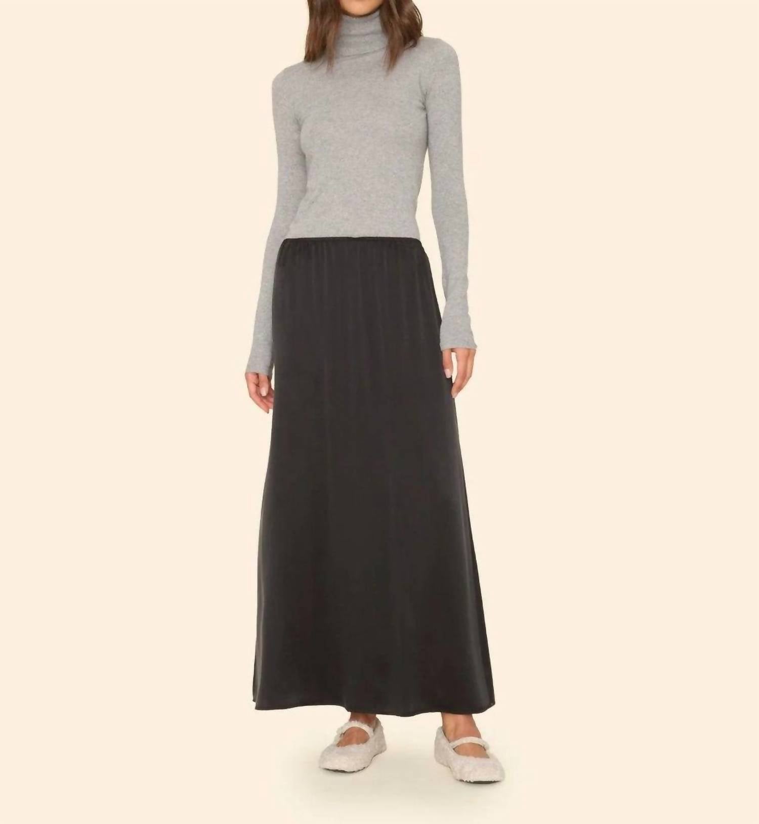 Flowy, comortable and stylish. This maxi skirt is a fan favorite. Elevate your wardrobe with the Sela Skirt by XIRENA, crafted in luxurious sand-washed silk charmeuse. This elegant black maxi skirt features a refined slip-on design with an elasticized waist for comfort, complemented by a center-front back slit for ease of movement. Closure: Pull-on.