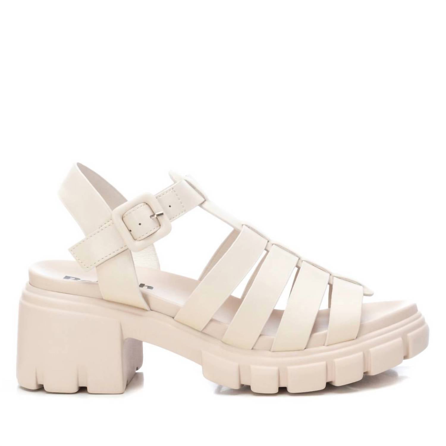 This sandal will take you from brunch to dinner and everything in between. Made in material that imitates leather. Sandal type crab with buckle. Wide heel of 7 cm with front platform to tone. Non-slip sole.