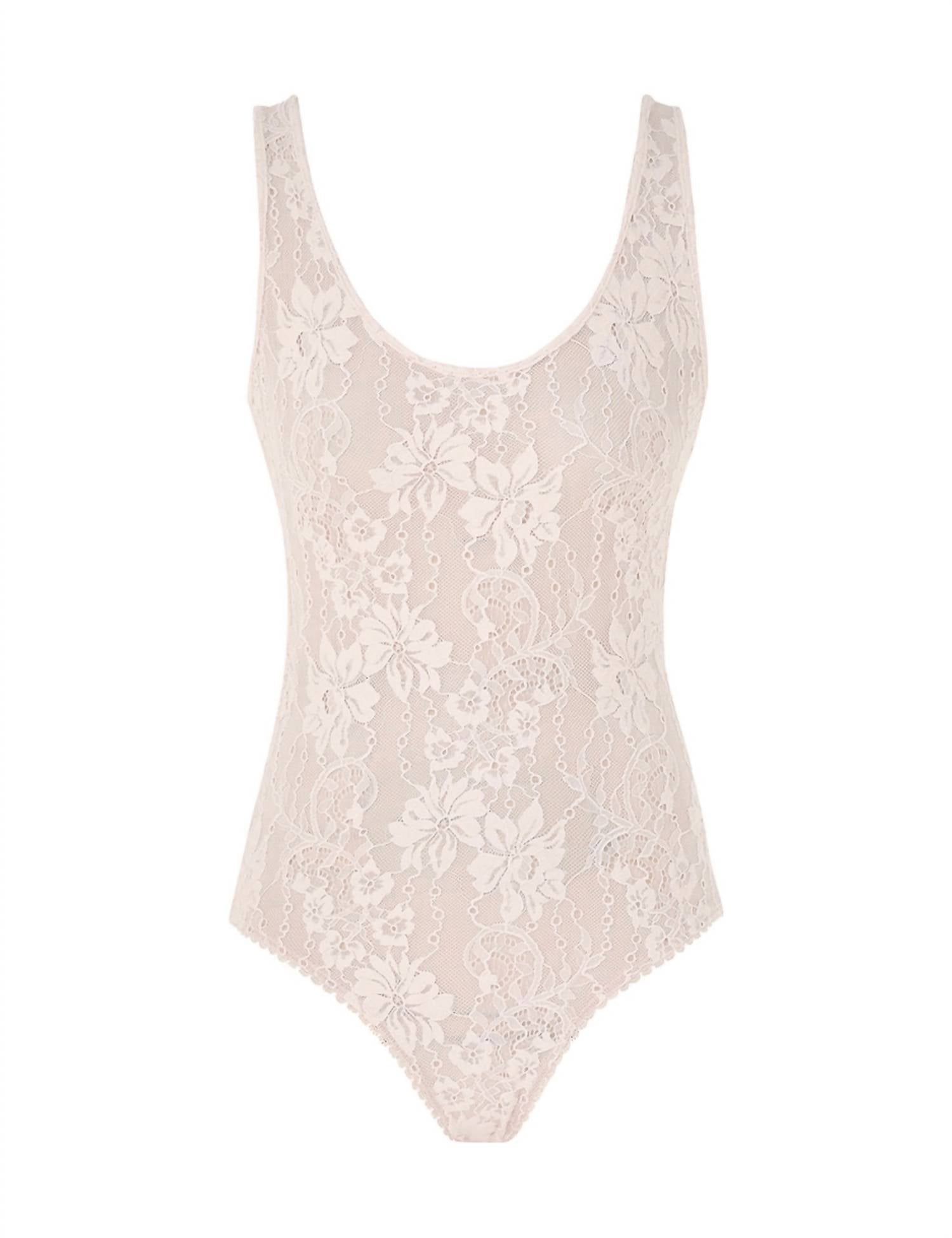 Introducing the Zimmermann Lace Scoop Neck Bodysuit, an exquisite piece in elegant pale pink perfect for evening events. This sleeveless bodysuit is crafted from a luxurious stretch lace fabric, comprising 90% polyamide and 10% elastane, featuring a comfortable mesh lining of 85% polyester and 15% elastane. Designed for a true-to-size fit, it ensures effortless elegance with a scoop neckline and a convenient snap closure. Care for your bodysuit by hand washing it, showcasing impeccable quiet luxury this summer.