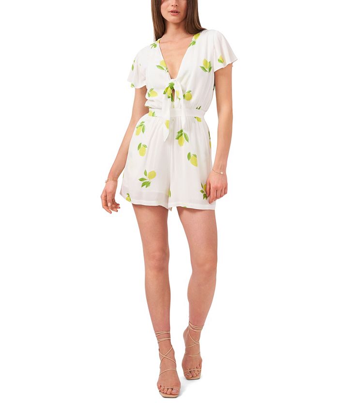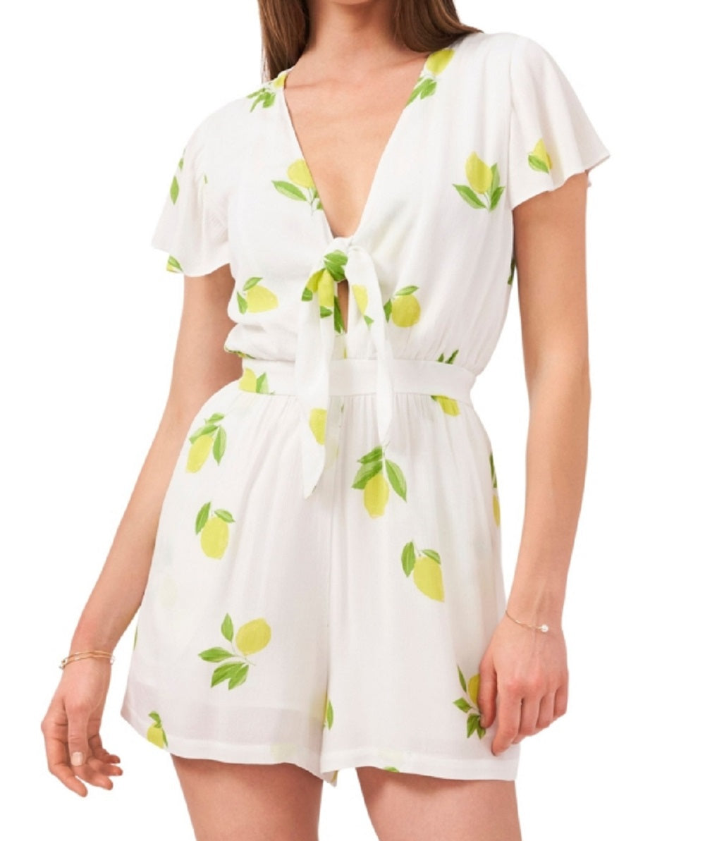 Este macacão portátil é ótimo para os dias de primavera e verão. A gravata frontal e a estampa de limão elevam o macacão 1.STATE. | Decote em V | Manga curta | Zíper | Forrado | Bolsos laterais | Amarração frontal