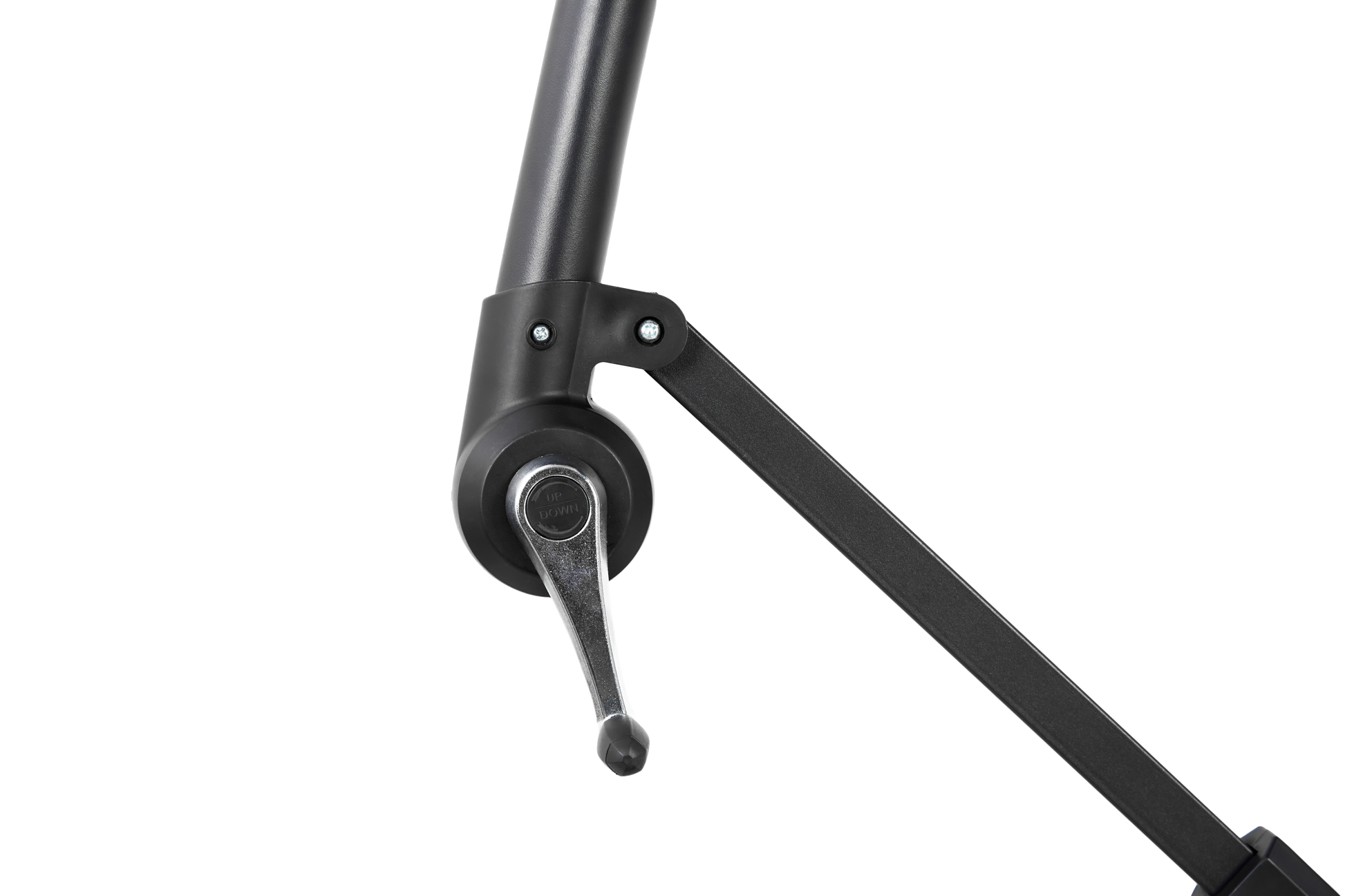 - Easy hand-crank lift and smooth tilt adjustment for directing shade