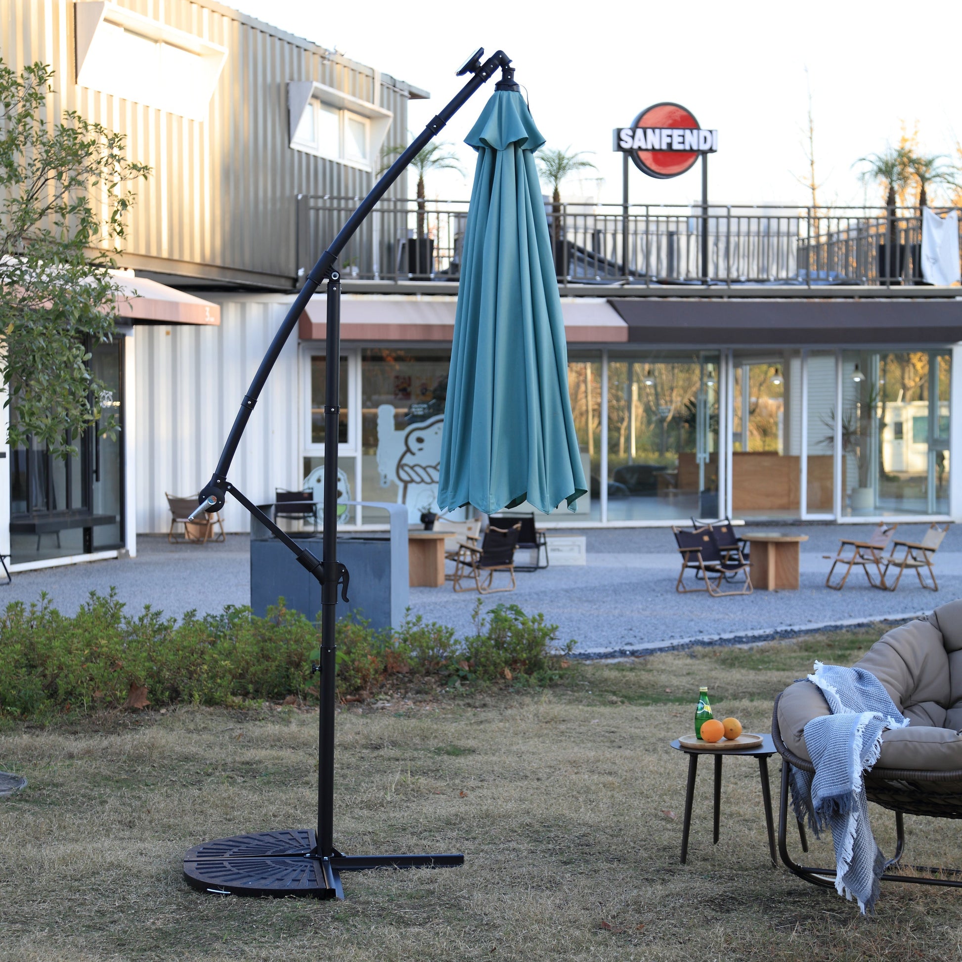 10ft Solar LED Offset Hanging Patio Umbrella (Light Green)