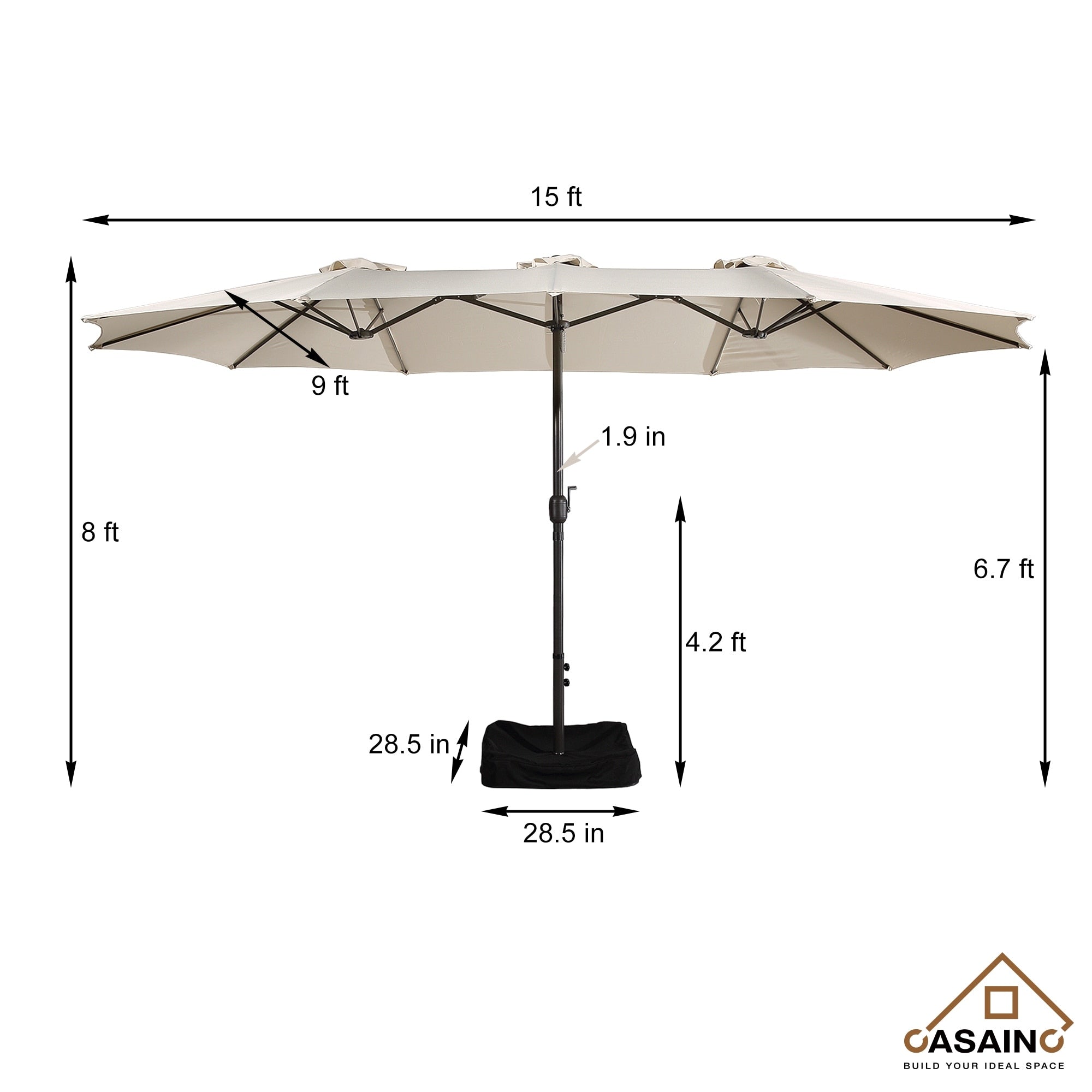 Guarda-sol de pátio de dupla face de 15 pés com manivela e base