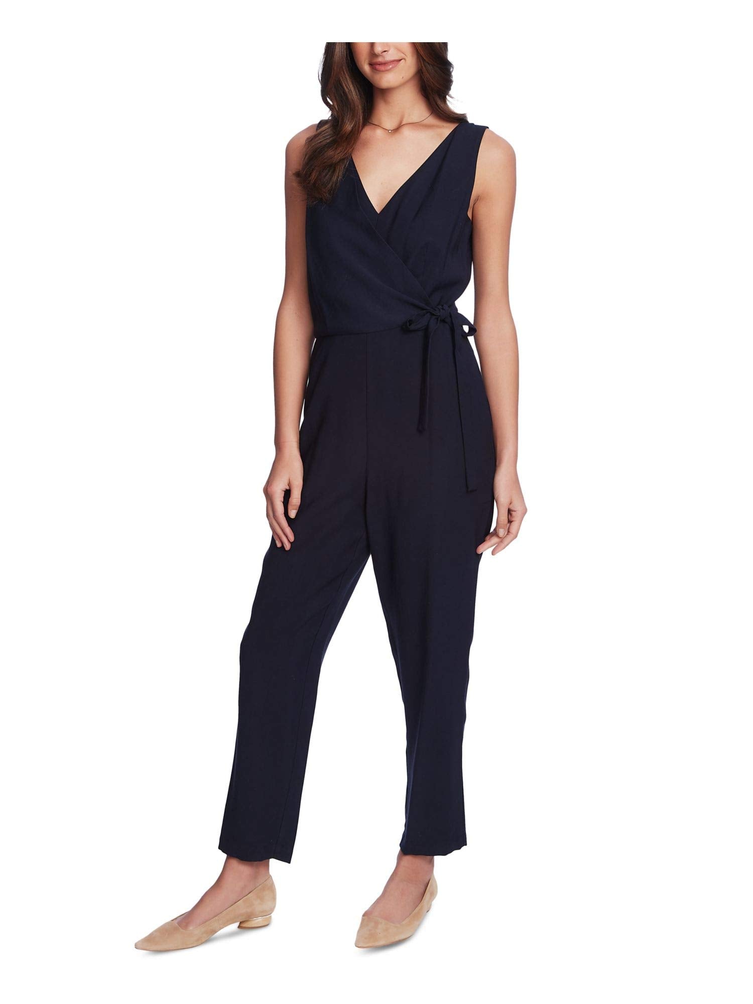 Adquira já este macacão sem mangas da 1STATE, com um lindo estilo sobrepeliz na frente e nas costas. Costura interna de aproximadamente 27 cm. Abertura da perna de aproximadamente 14 cm. Decote sobrepeliz com zíper oculto nas costas e fecho de colchete.