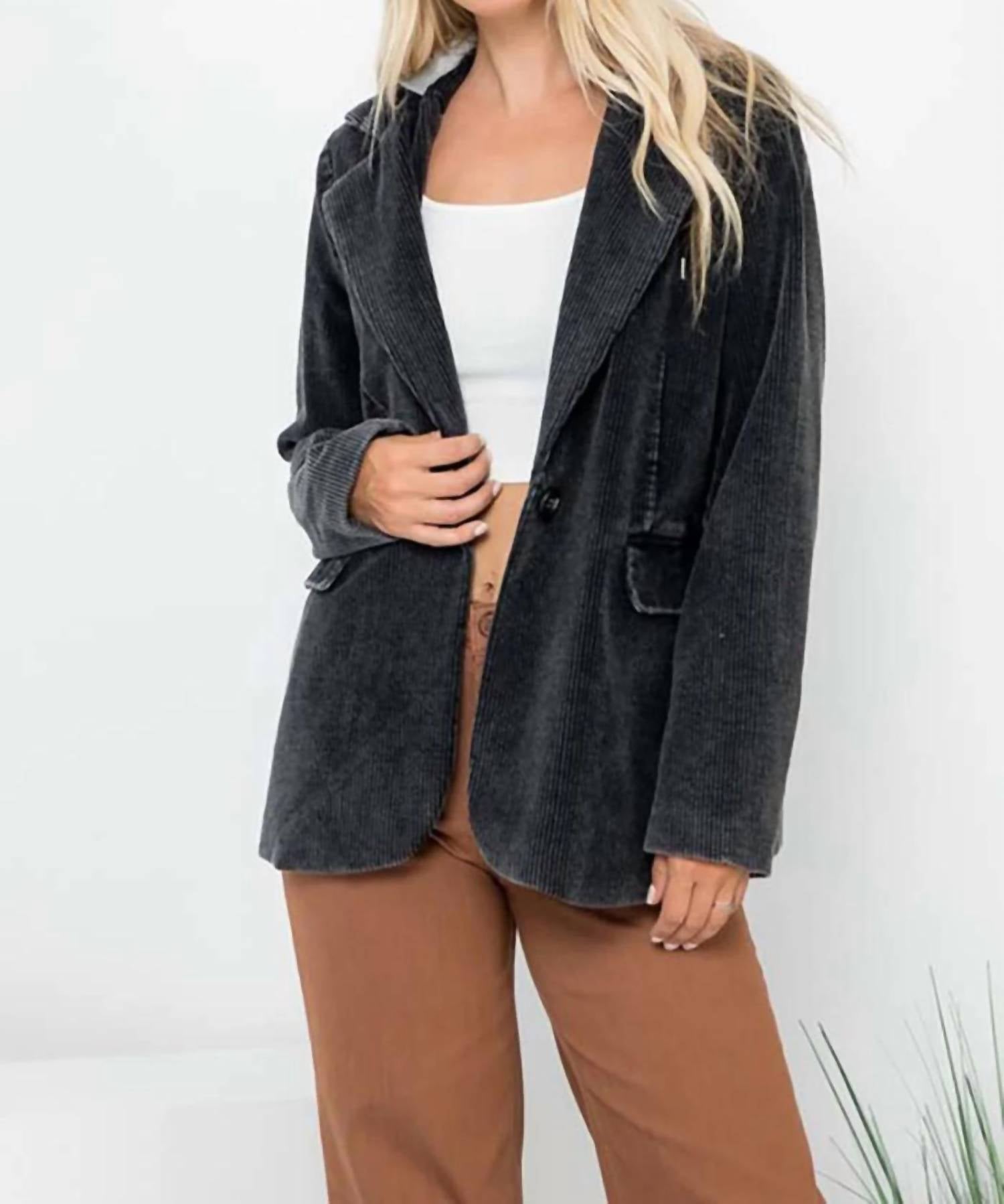 Elevate your ensemble with the Elevated Chic Blazer in black by 26 International, a perfect blend of fashion and utility. This long sleeve blazer offers a composition of a 100% cotton shell, with contrast made from 60% cotton and 40% polyester, complemented by a 100% polyester lining. Its design features a button closure, secure pockets, and practical dimensions like an XL size with a shoulder width of 18.5 inches, a 24-inch bust, and a 27.5-inch length. Care involves turning inside out and machine washing cold on gentle cycle, lining dry for maintaining its elegant structure.