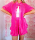 Unleash your inner fashionista and ditch those boring PJ's ;). This sheer hot pink set features an elastic stretch waistband, as well as ruffle sleeves and bottoms, for a playful and flirty look! Loose Fit - Wear as an outfit with nude bra and panties!