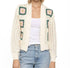 Featuring long sleeves and crafted from 100% cotton, this cardigan ensures a soft and cozy feel. The boxy cropped silhouette is complemented by intricate geometric crochet squares on the front, adding a touch of vintage charm. Pull-on. Hand wash. Garment length: 20.25 inches.