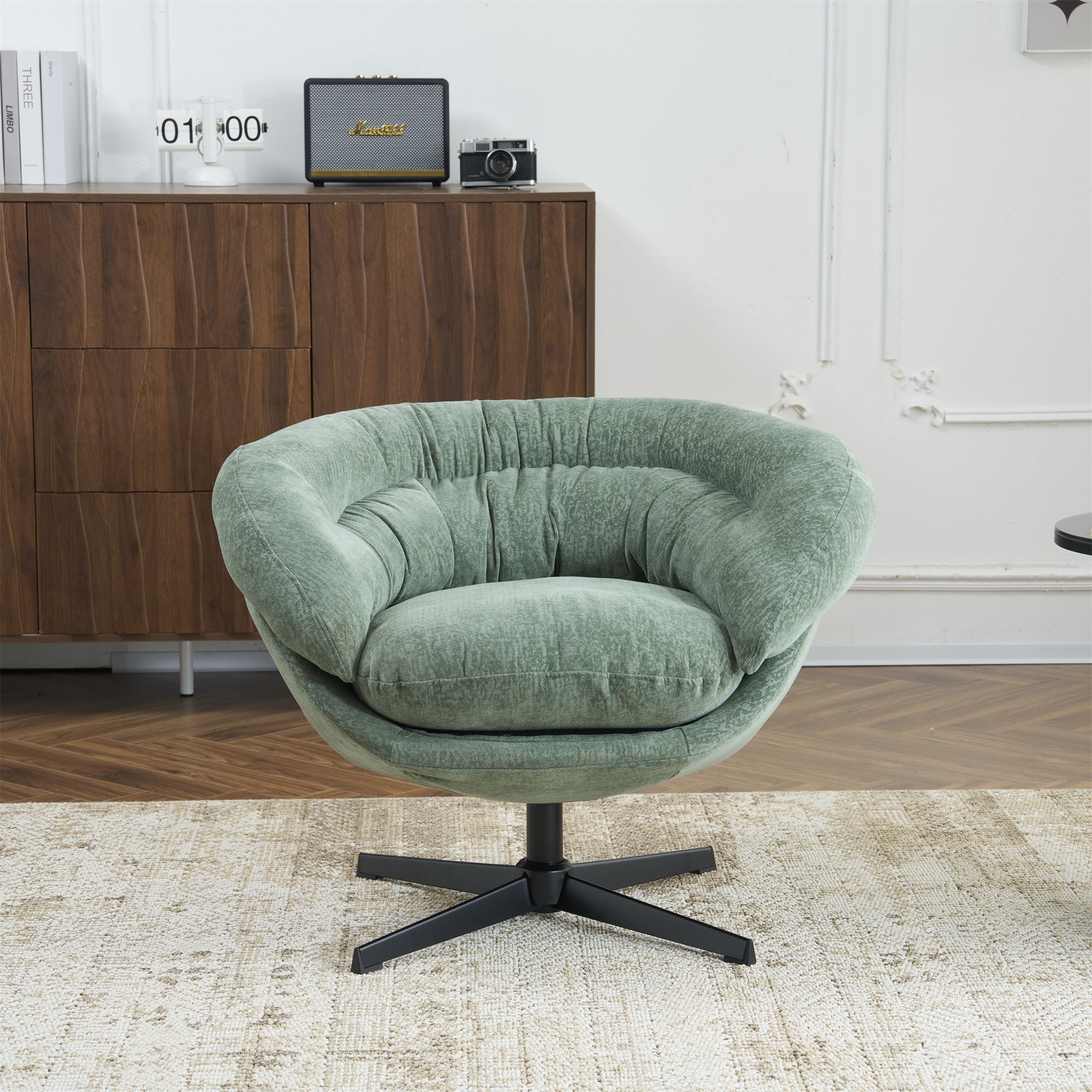 Green Chenille Swivel Chair – Ergonomic Comfort with 360° Rotation by Christopher Knight Home-