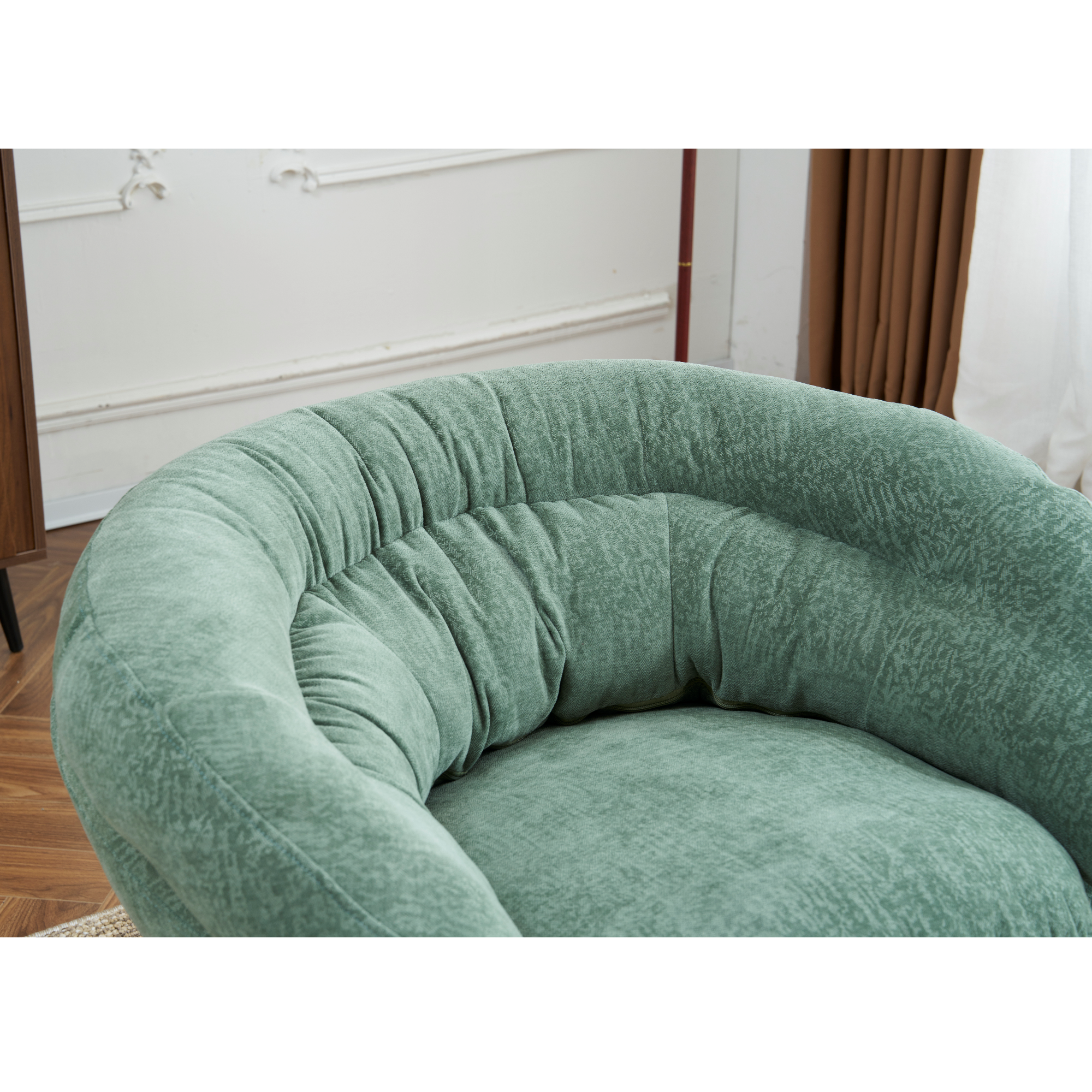 This beige chenille swivel chair blends ergonomic support, versatile style, and effortless functionality—creating a comfortable and sophisticated seating solution for any home or workspac