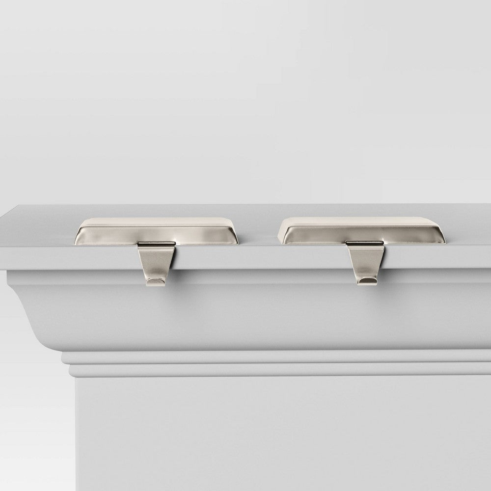 Decore facilmente sua casa para a época alegre e brilhante do ano com estes porta-meias básicos da Wondershop. Estes porta-meias prateados foscos apresentam uma base retangular simples e pesada que permite fácil colocação em qualquer prateleira ou lareira, eliminando a necessidade de martelar pregos. Cada suporte tem um gancho capaz de suportar até dois quilos de guloseimas, perfeito para todas as guloseimas que o Papai Noel deixa na véspera de Natal.