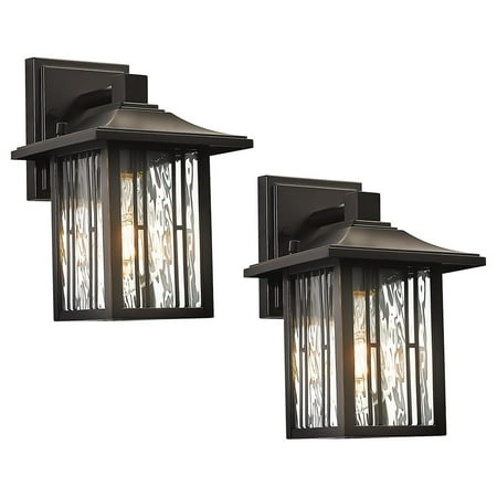 Melhore seu espaço ao ar livre com este conjunto de duas elegantes lanternas de parede com um design clássico. Feitas de alumínio resistente com um revestimento especial em spray, essas lanternas oferecem durabilidade e resistência às intempéries, tornando-as perfeitas para qualquer ambiente externo. O exclusivo vidro com efeito cascata adiciona um toque de sofisticação à decoração da sua porta da frente ou quintal. Fácil de instalar e compatível com lâmpadas E26 de base média, incluindo opções de LED e incandescentes.