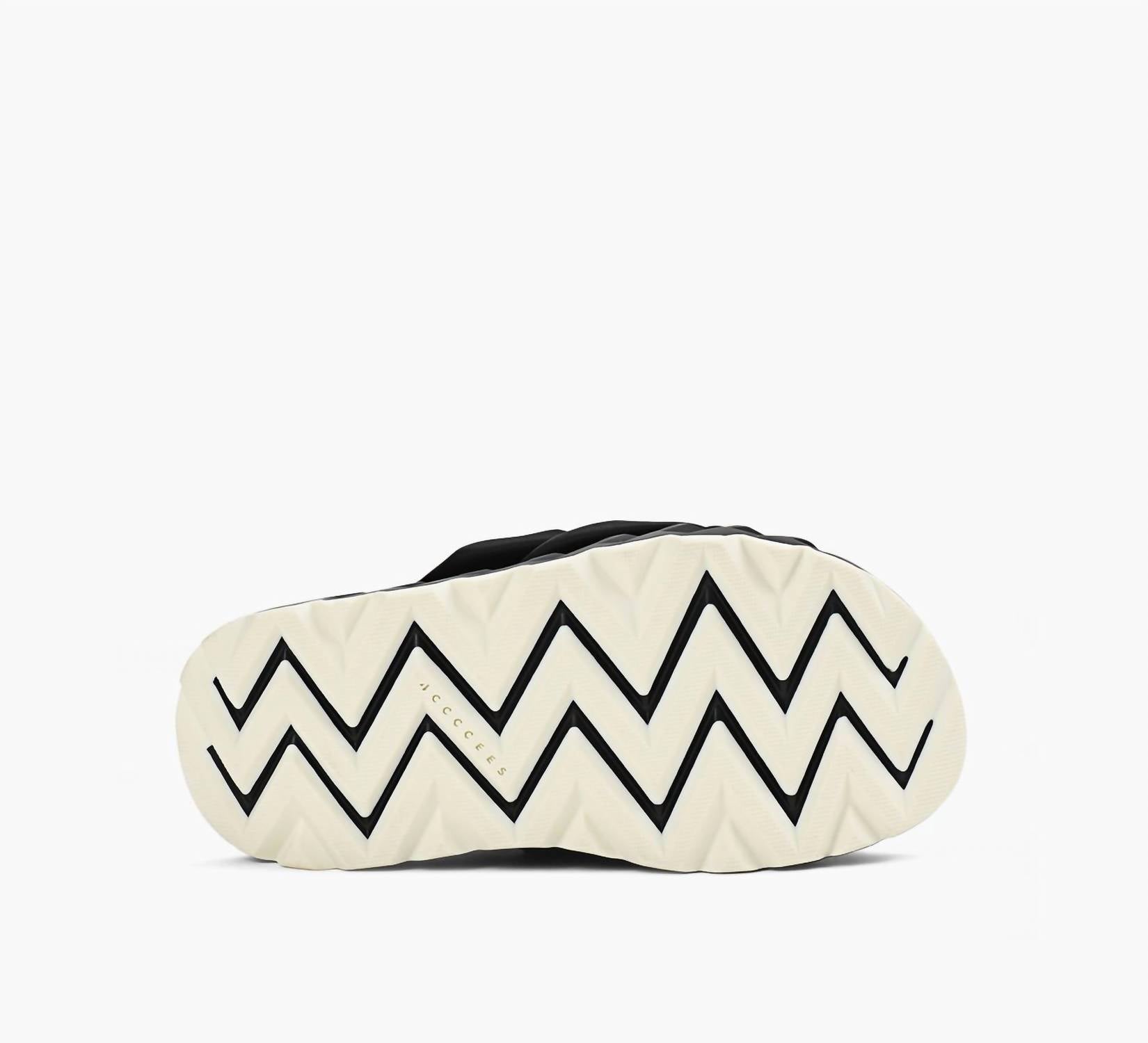 Introducing the Women's Jabara Amor Sandal by 4CCCCEES, an innovative blend of style and engineering inspired by paper-folding. This black, open-toe slide sandal features a hand-smocked nylon upper with a unique triangular texture that adds a three-dimensional effect. Sitting on a concertina-pleated TPU outsole for vertical flexibility, this design ensures both comfort and sophistication. With a 1.6-inch low wedge heel and a luxurious sheep leather lining, these sandals redefine elegance and comfort.