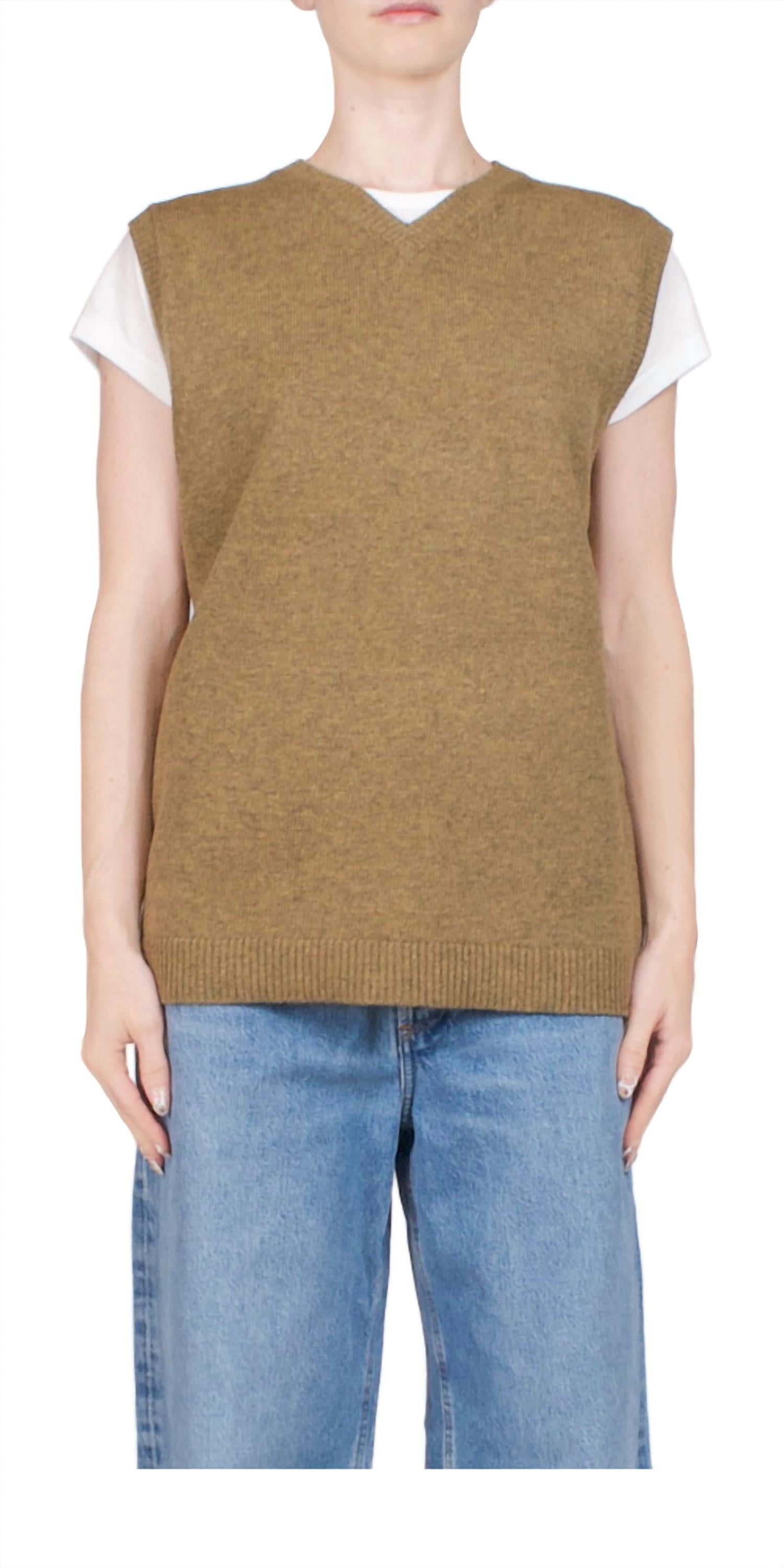 O Milano Vest Hunter da 6397 é uma adição sofisticada a qualquer guarda-roupa, confeccionado com uma mistura de 85% lã merino e 15% cashmere. Esta peça sem mangas apresenta um corte alongado e um decote em V alto, realçado por acabamento canelado na bainha inferior, no pescoço e nas mangas. Oferece fecho pull-on e foi projetado para uma silhueta relaxada, ideal para opções versáteis de estilo.