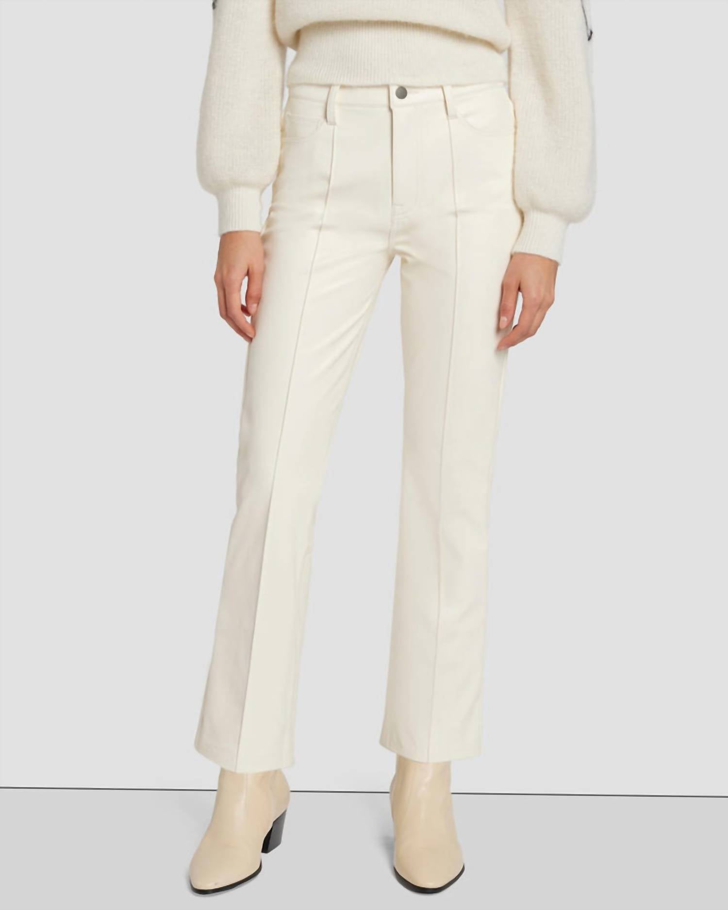 Elevate your ensemble with the 7 For All Mankind Faux Leather High Waist Slim Kick Pants in sophisticated cream. These Women's pants are crafted from 100% polyester luxe faux leather and are designed with a fitted hip that gracefully flares below the knee to enhance your silhouette. Featuring a high-rise waist and sleek zip closure, they're perfect for adding a touch of minimalist elegance to any occasion. Care for these stylish pants by dry cleaning only.