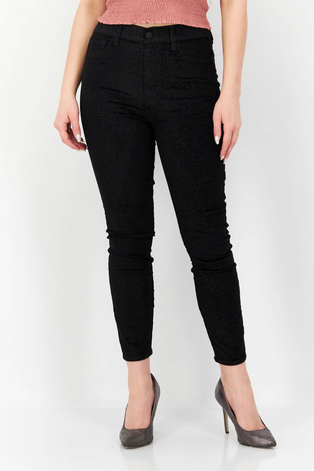 A calça jeans skinny perfeita para usar com suas botas favoritas nesta estação! Eleve seu guarda-roupa com a Calça Jeans Skinny de Veludo Metálico e Cintura Alta da 7 For All Mankind, com acabamento metálico craquelado em toda a peça. Esta calça jeans skinny preta oferece cinco bolsos para funcionalidade e estilo. Confeccionada em uma mistura de algodão premium com 53% algodão, 36% modal, 8% poliéster e 3% elastano, esta calça jeans oferece um caimento elegante e cós alto. Fechamento: Braguilha com zíper e botão. Cuidados: Lavagem a seco.