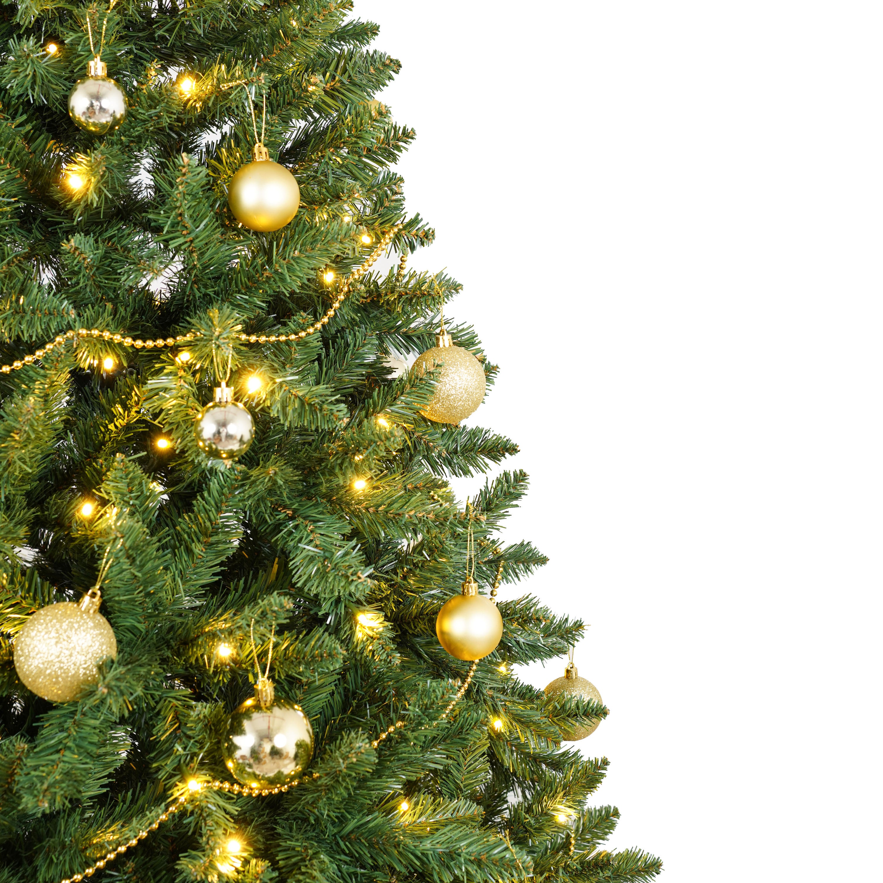 Bring the magic of the holidays to your home with this 7.4ft pre-lit green artificial Christmas tree. Designed for full, lifelike beauty, it features 1350 thick PVC branch tips that create a lush, natural shape, perfect for displaying ornaments, garlands, and lights.
