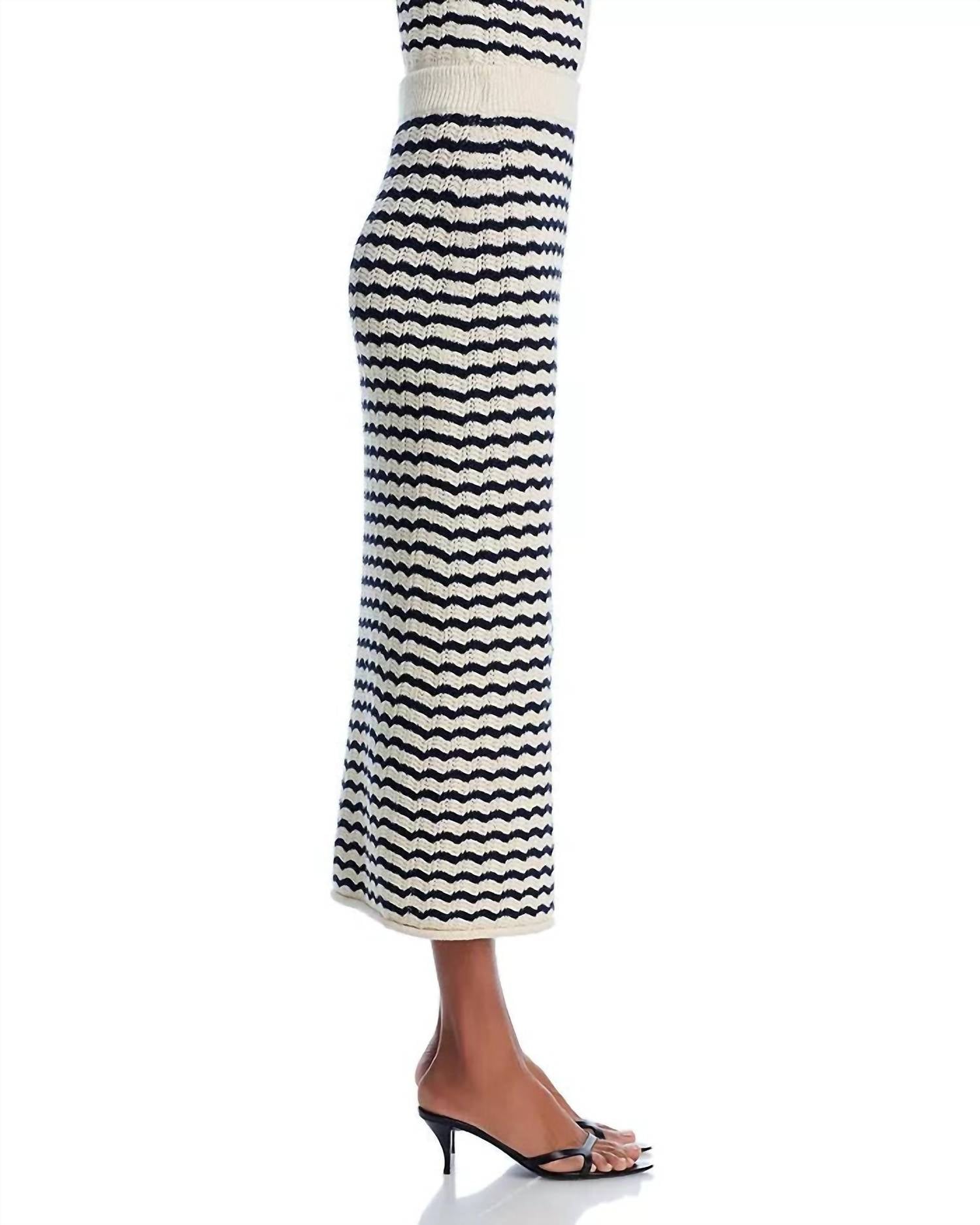 Embrace effortless elegance with the Alexis Skirt by A.L.C., crafted from a soft yet structured cotton blend in a chic parchment and navy stripe. This versatile midi skirt, measuring 31.5 inches in length, is designed for a minimalist fall style and effortlessly enhances your Thanksgiving or dinner party look. Featuring a convenient pull-on closure, this piece offers both comfort and sophistication. For easy maintenance, simply machine wash and tumble dry.
