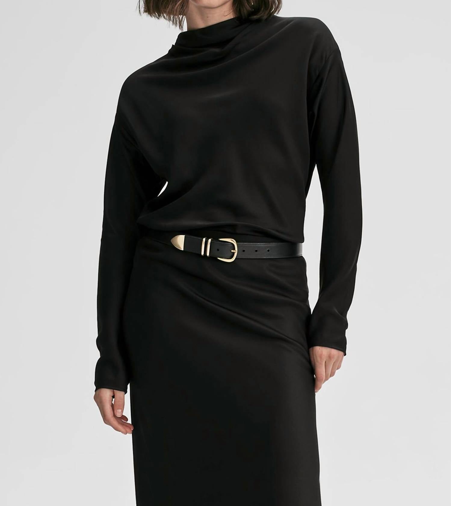Great fit, cute design, soft fabric. You'll love everything about this long sleeve tee. The Georgia Top is a refined cowl-neck blouse that effortlessly elevates any occasion. Made from signature fluid viscose, it drapes beautifully over the body with a bias-cut silhouette that flatters and skims the figure. The subtle cowl neckline adds a touch of elegance, while dropped shoulders bring a relaxed, laid-back vibe. Finished with a back keyhole vent and tonal buttons, this versatile piece is perfect for transitioning from the office to an evening out, offering both style and sophistication for any wardrobe.