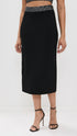 Step out in style with the Jane Sequin Embellished Knit Midi Skirt by A.L.C., showcasing a striking blend of black and silver hues. Designed with a comfortable pull-on closure, this 32.25-inch midi skirt features a sequined embellished trim for a touch of elegance. Composition: 72% Viscose, 28% Polyester. Imported, China. Dry clean only.