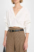 Introducing the Jordan V-neck Top by A.L.C., a sophisticated White blouse perfect for engagement occasions. This blouson fit top features long ruched sleeves with button cuffs and a cropped elasticized hem for a modern touch. Made from a cotton blend, it's designed as a pull-on style and is dry clean only. Imported and unlined, it offers a versatile solid pattern ideal for workwear in the spring season.