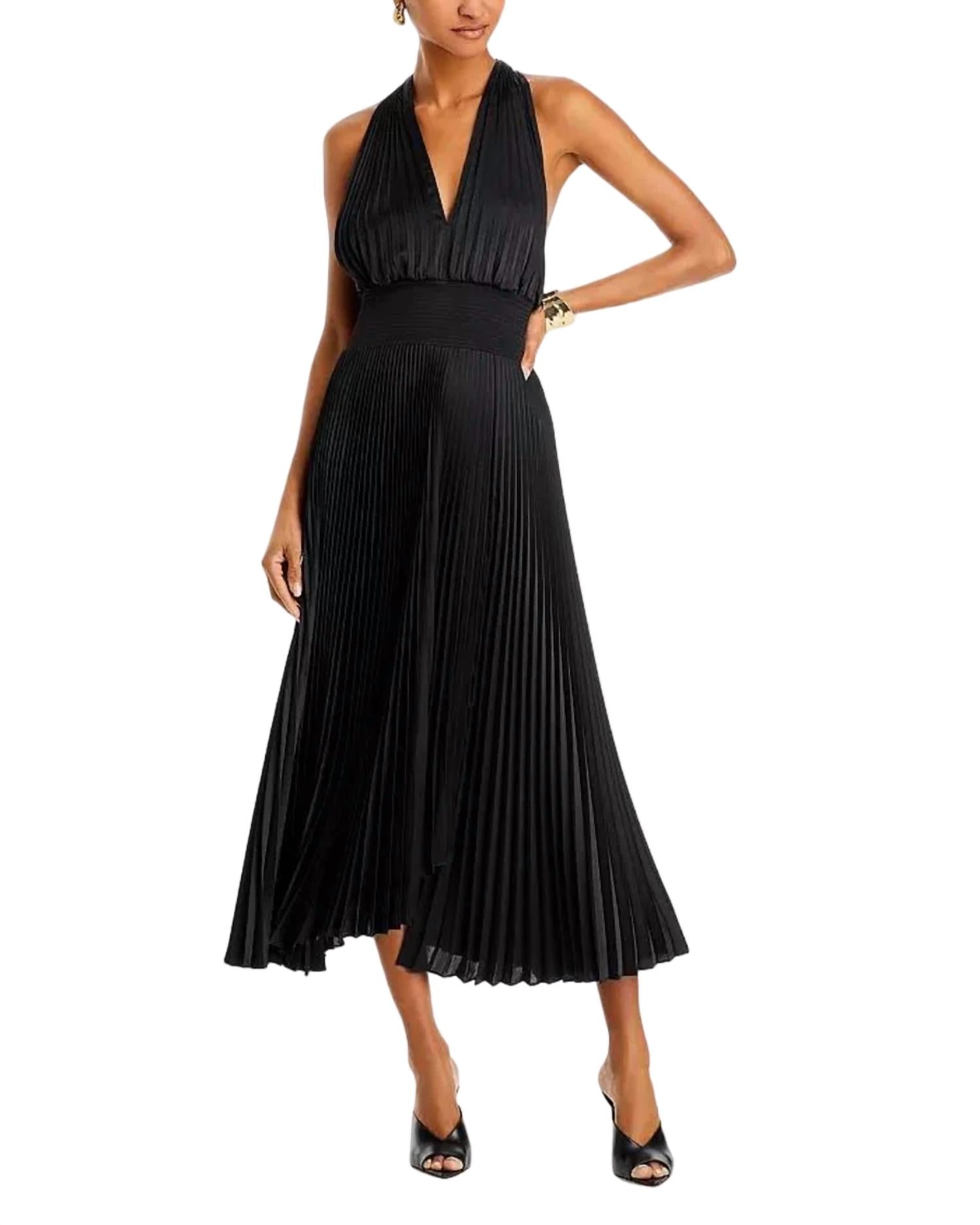 Um vestido midi tão versátil que suas opções de uso são infinitas. Com decote profundo frente única com detalhe de decote nas costas, cintura franzida e bainha assimétrica estilo lenço. Tamanho real. Lavagem a seco. 100% poliéster.