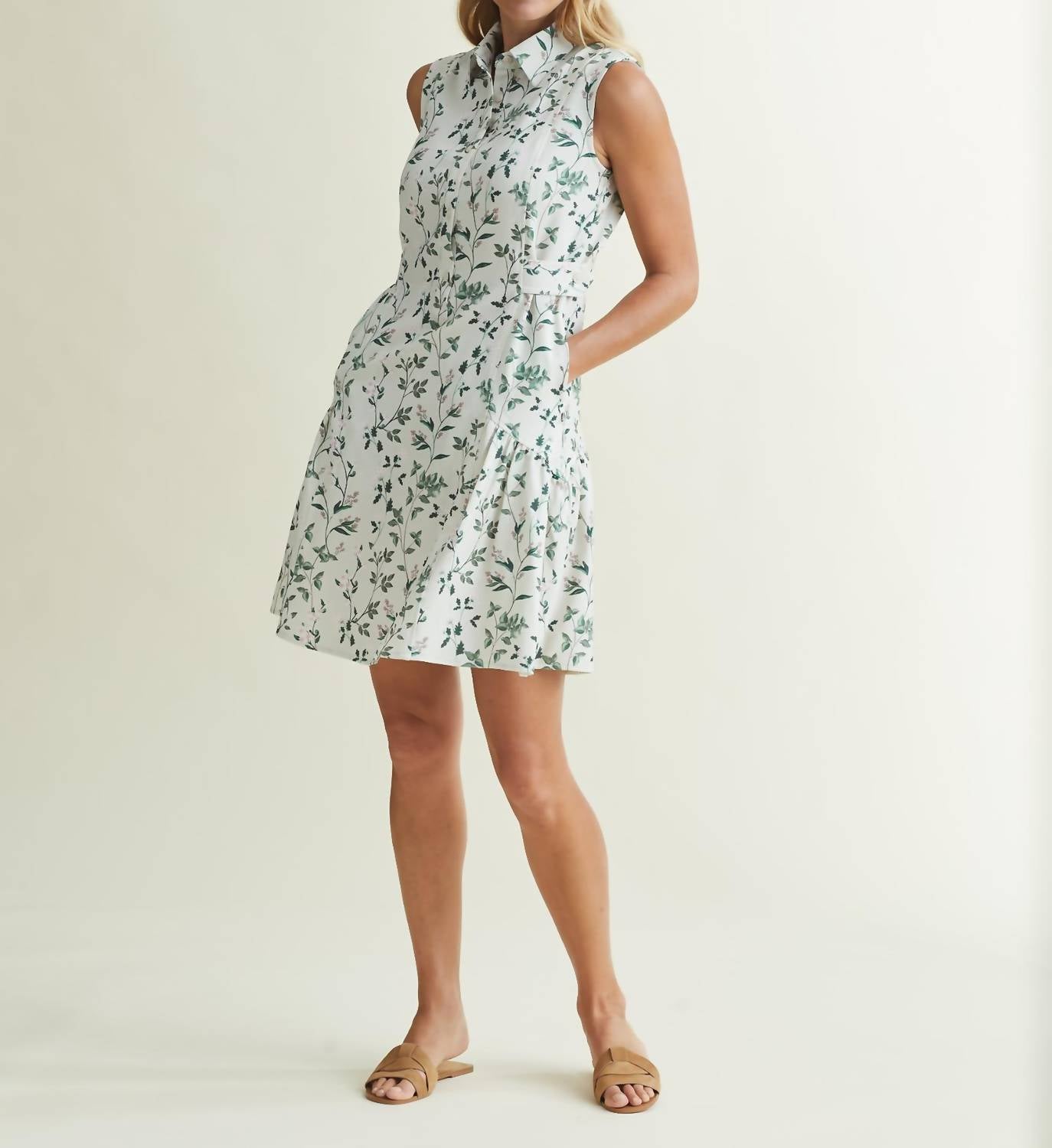 The kind of easy and flattering dress you'll be reaching for all season long. Discover the Women's Garden Dress by A. PUTNAM, a perfect choice for a summer vacation with its vibrant floral pattern. This sleeveless mini dress features a classic collar and a chic A-line silhouette, ideal for the maximalist trend followers. Made with a convenient button closure, it includes practical pockets for added functionality. Perfect for sunny getaways, it embodies effortless elegance and a playful aesthetic.