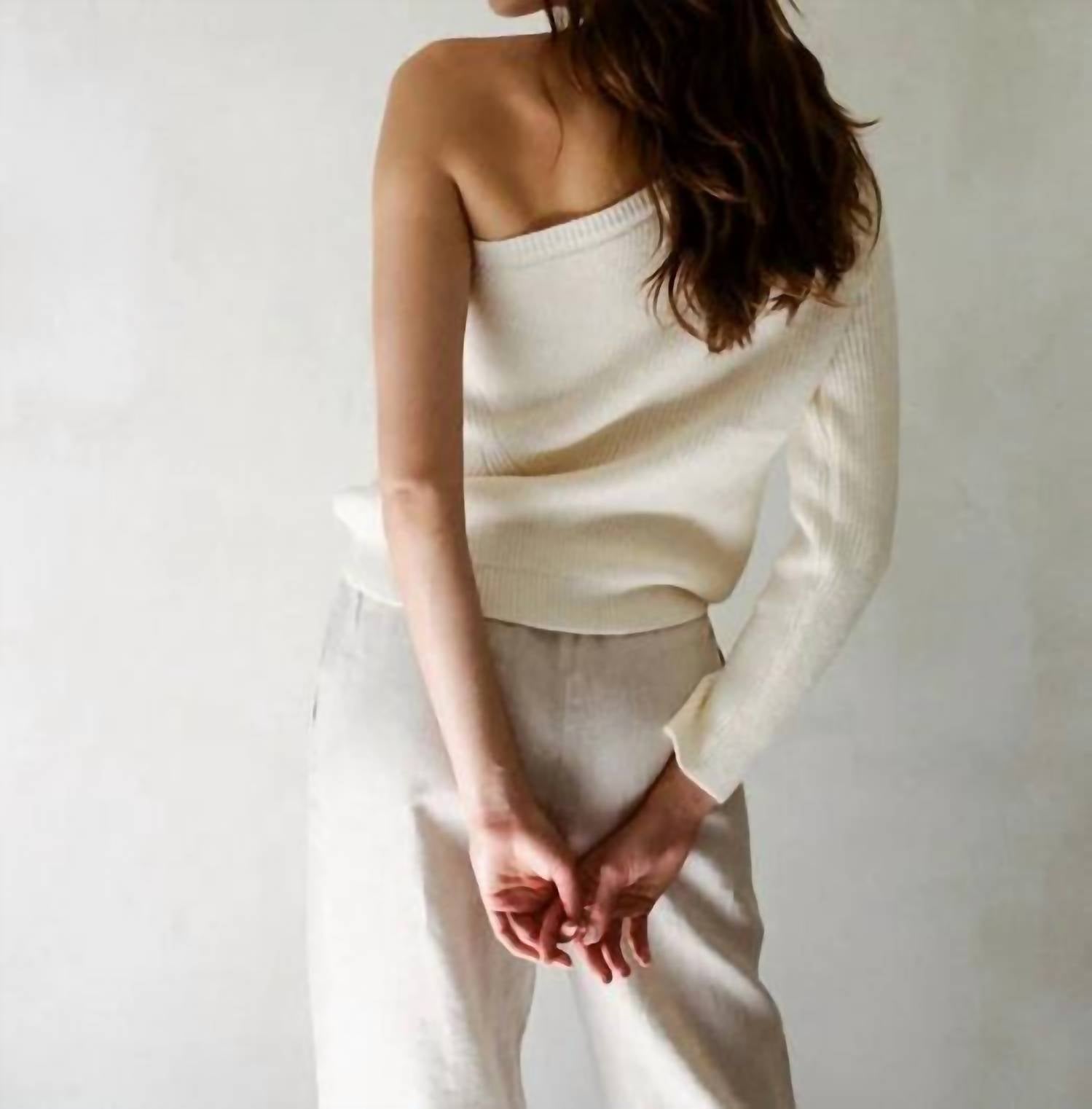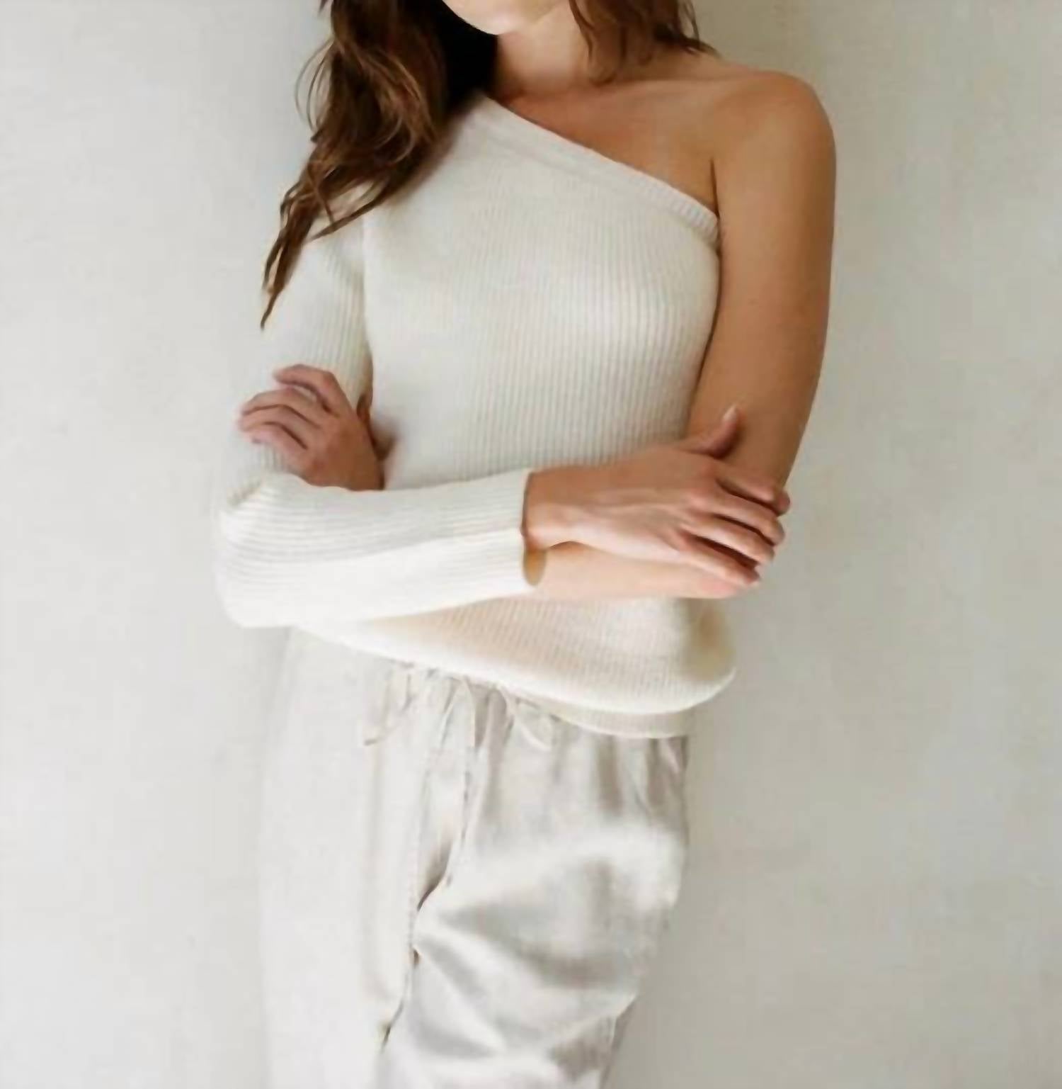A timeless blouse that will never go out of style. The Rania Top by a.ren combines style and comfort with its one-shoulder design and long sleeves, ideal for minimalist fashion lovers. Crafted from a blend of acrylic, polyester, and nylon, this solid white blouse offers warmth and durability. Its pull-on closure makes it easy to wear, while the hand wash care ensures it stays in pristine condition. Perfect for a spring holiday party, this top will be a chic addition to your wardrobe.