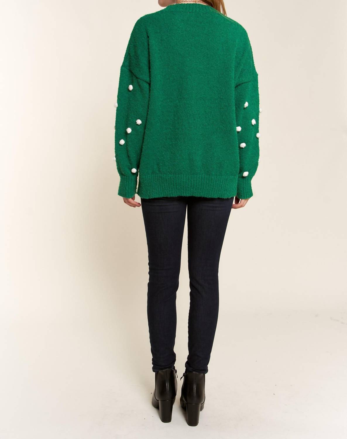 Embrace festive chic with the Joy Pompom Pullover Sweater by A Thousand Words. Crafted in a vibrant green, this women’s sweater features long sleeves and a cozy crewneck design. Made from 100% polyester, it's perfect for the Winter season and holiday parties. Easy-to-wear with a pull-on closure, enjoy the textured maximalist trend this Christmas.