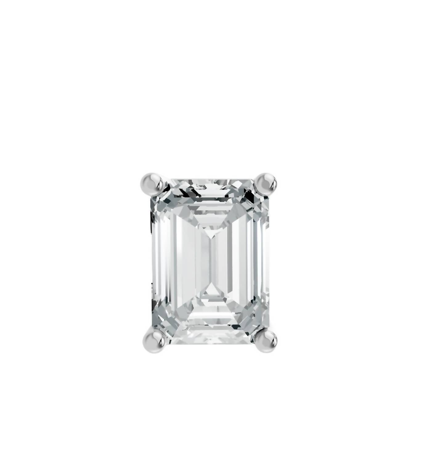 eye-catching earrings for every occasion. Discover the AAMIAA 0.50ctw Emerald Shape 4 Prong Push Back Studs, sophistication personified in rhodium-plated sterling silver. These earrings dazzle with lab-grown, emerald-shaped diamonds of VS1 clarity and an F color grade. Made from 925 sterling silver, they showcase a combined metal weight of 0.7 and are secured with a push back. The design features a prong setting for enhanced brilliance, and the timeless appeal of diamonds as an April birthstone. Carats Weight: 0.50.