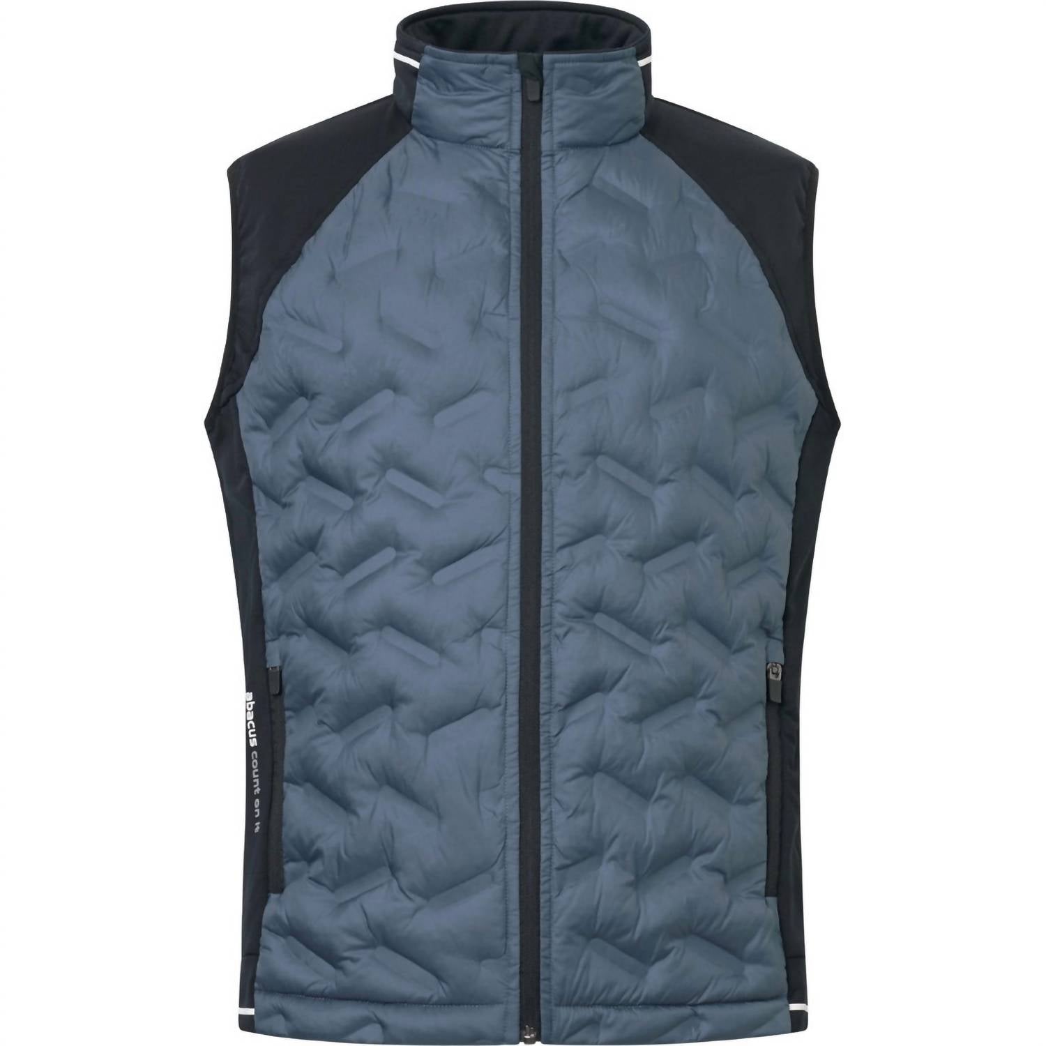 Discover the Grove Hybrid Vest by Abacus Sportswear US, an ideal choice for winter wear in a sophisticated Dusty Blue. This sleeveless vest is crafted from a quilted windproof polyester, lined for added warmth, and features stretchable fleece side panels and shoulders for improved movement. It boasts a practical zip closure, with full zipper access at the front and two pockets. Designed with a contrast stripe detail, it also integrates Abacus branding for a stylish finish.