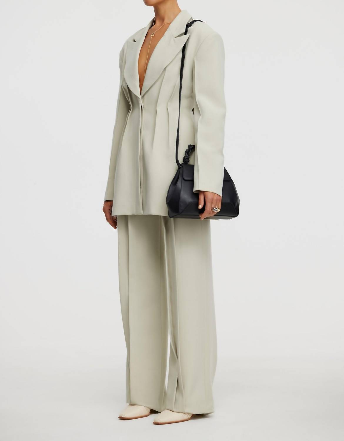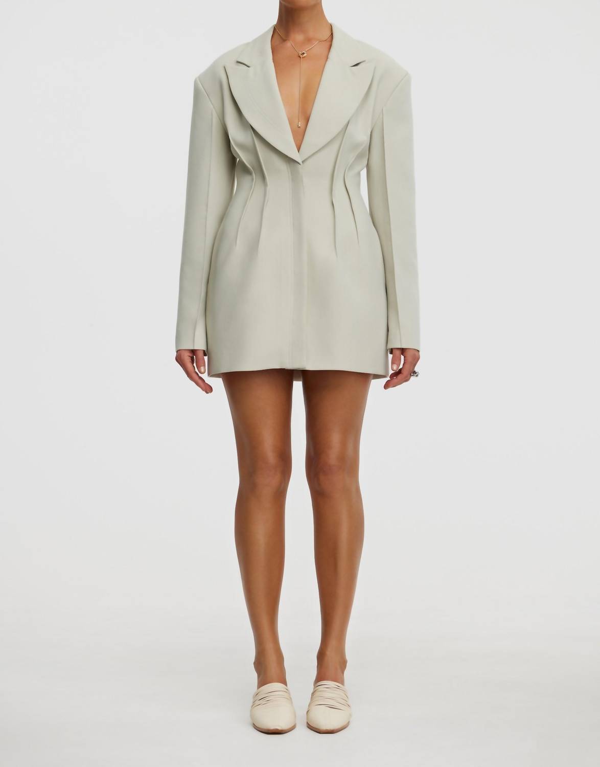 The ACLER Edrom Cinched-waist Jacket in Stone is a sophisticated addition to any wardrobe, perfect for a minimalist dinner party look. This long sleeve blazer features a sleek polyester composition, complemented by a luxurious twill suiting fabric for a refined touch. Designed with a single button closure, it boasts dropped shoulders, wide lapels, side seam pockets, and a removable back panel with concealed buttons for versatile styling. This fully lined jacket requires dry cleaning, blending structure with elegance seamlessly for the spring season.